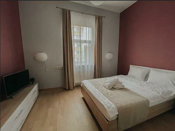 1-2 человека от 2500 руб./сутки.Возможность третьего гостя на мягкой раскладушке, Двухспальная кровать. Душ, туалет и стиральная машинка в комнате. Мини-кухня, холодильник, чайник, посуда и СВЧ. Телевизор и Wi-Fi. Полотенца.