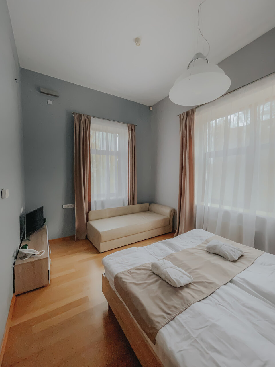 Отличное месторасположения , номера чистые уютные, завтраки можнл было закащать в номер , кухня вкусная, персонал вежливый ! Спасибо за уют !