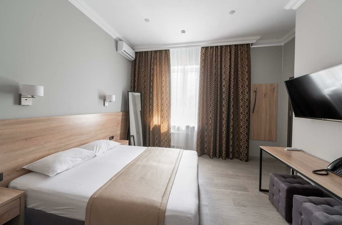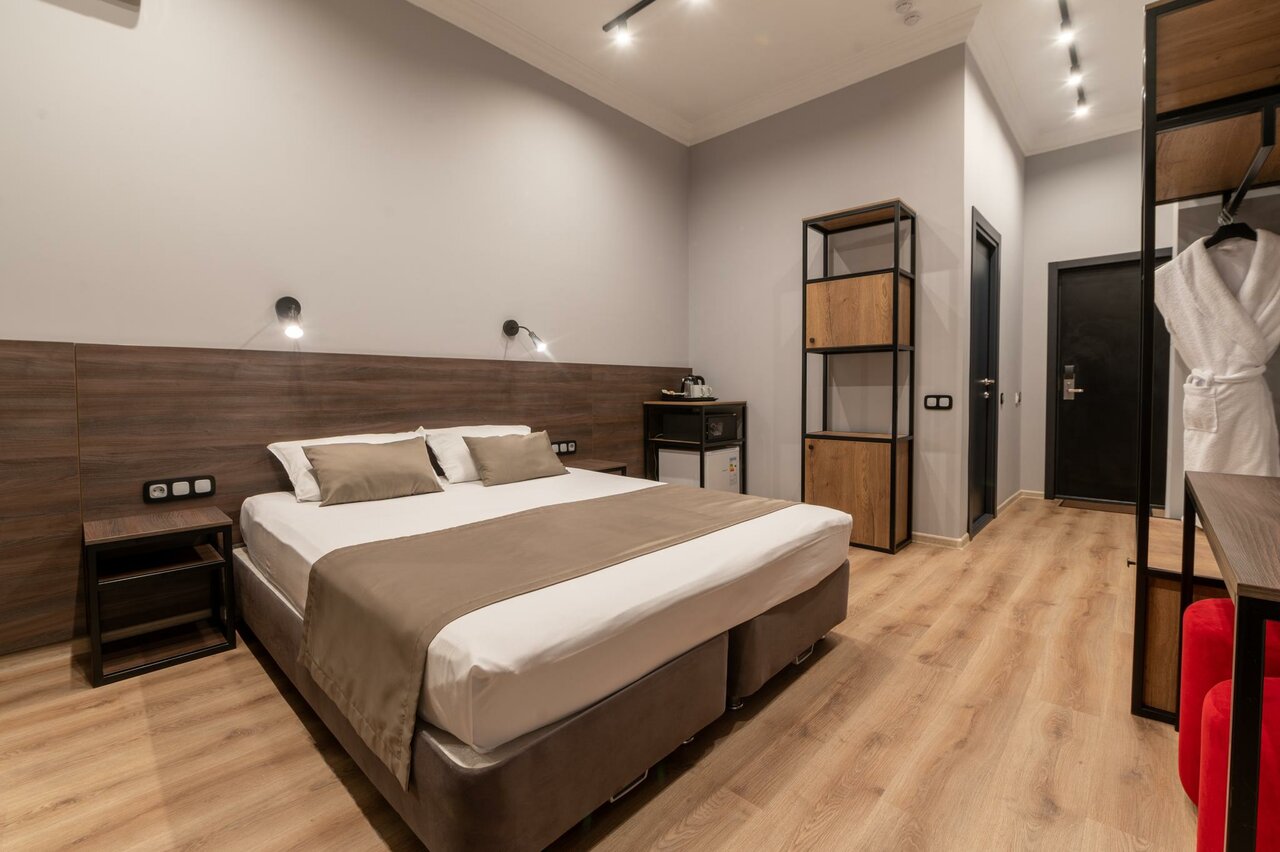 Городской отель в жилом доме. Номера свежие с хорошей обстановкой и сантехникой. В номерах есть всё необходимое. Нет завтрака, с парковкой плохо.