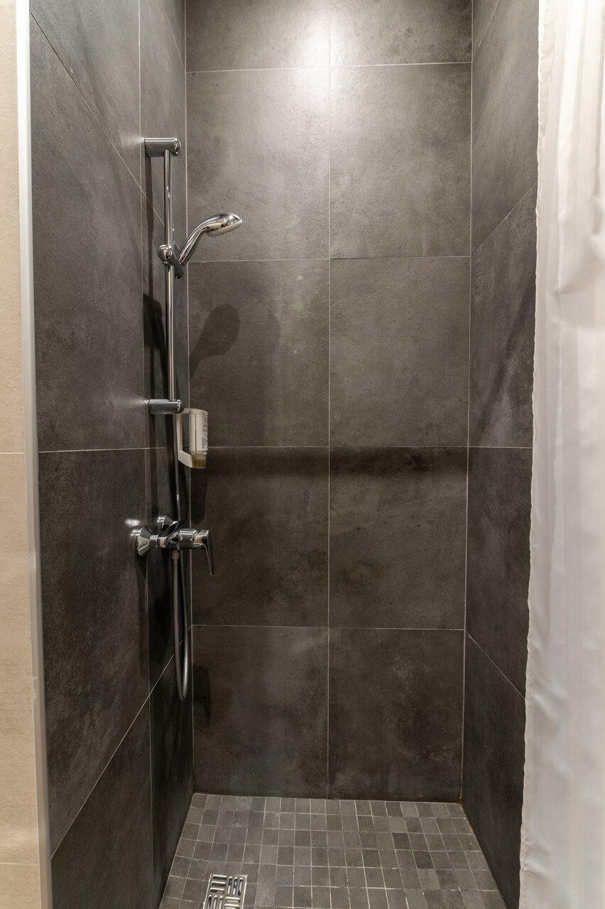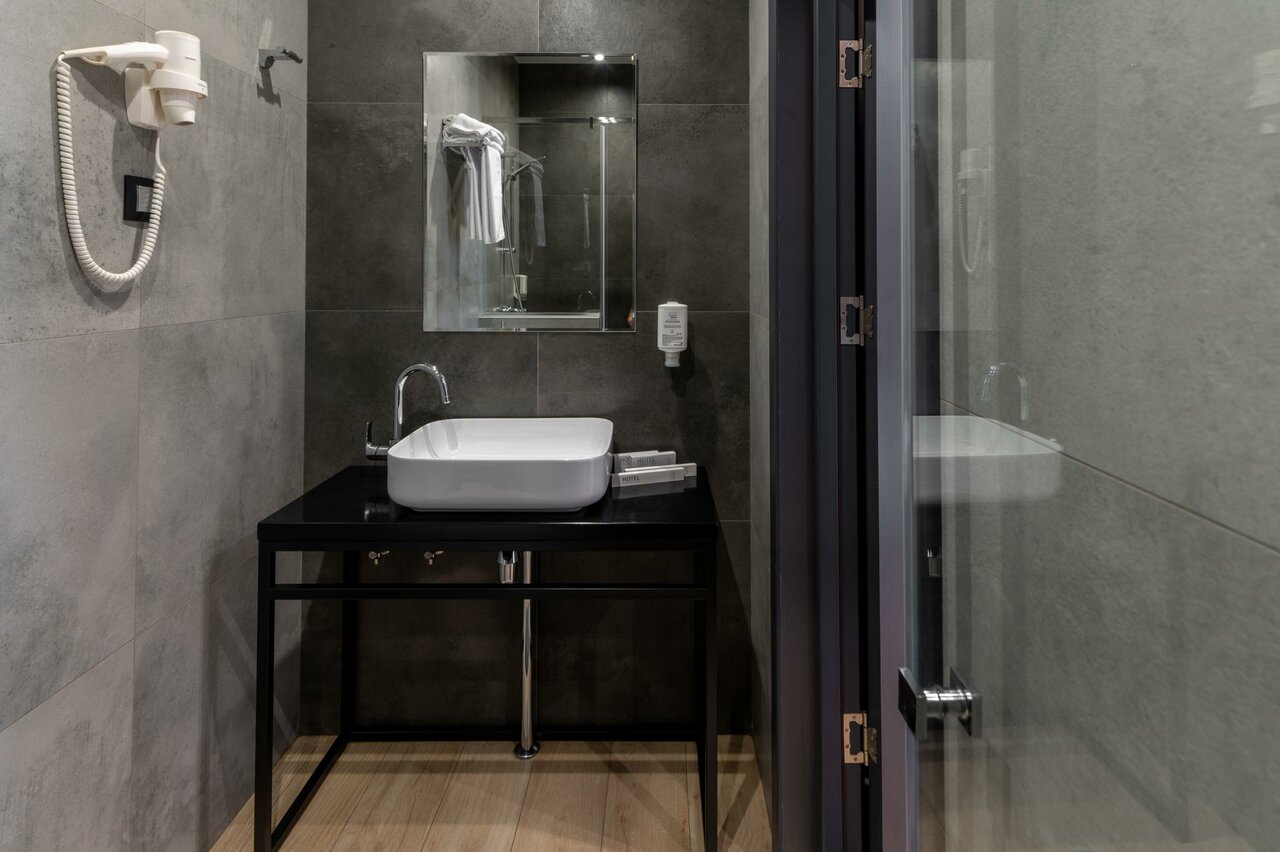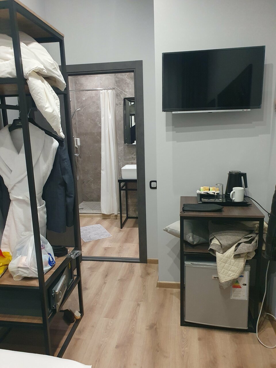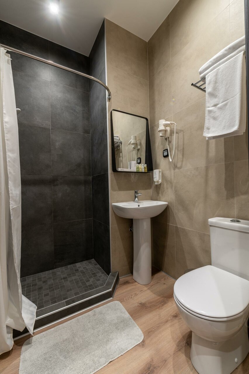 У нас был маленький номер (12 м). Но тем не менее достаточно удобный. Двуспальная кровать с жёстким матрасом, кондиционер, телевизор, холодильник, сейф. Санузел порадовал — хорошая сантехника (Grohe), удобная душевая кабина. Единственное, что доставило нам неудобство это отопление. Было очень жарко и душно. Батарея практически перекрыта но такая горячая, что не дотронуться. Открыли окно. Стало очень шумно. Спали с открытым окном.