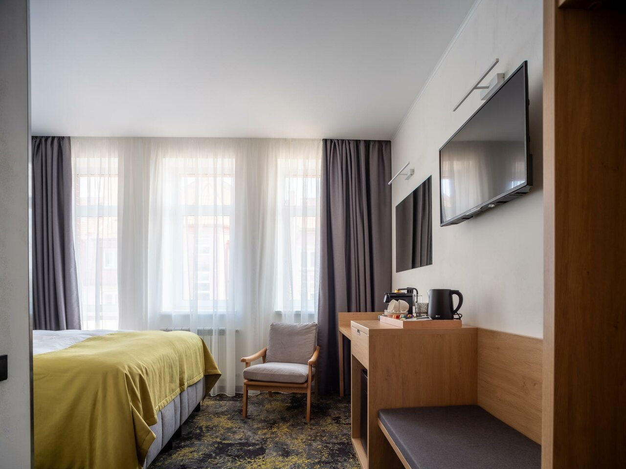 Рекомендую! Отличный, стильный, новый, современный отель в самом центре города! Все в шаговой доступности. В номере было все до кофемашины) удобные, комфортные матрасы — просыпаешься отдохнувшим, выспавшимся) еще и подушку можно выбрать на свой вкус, попробовала лавандуразнообразные, вкусные завтраки с бокальчиком игристого все супер, обязательно вернусь!