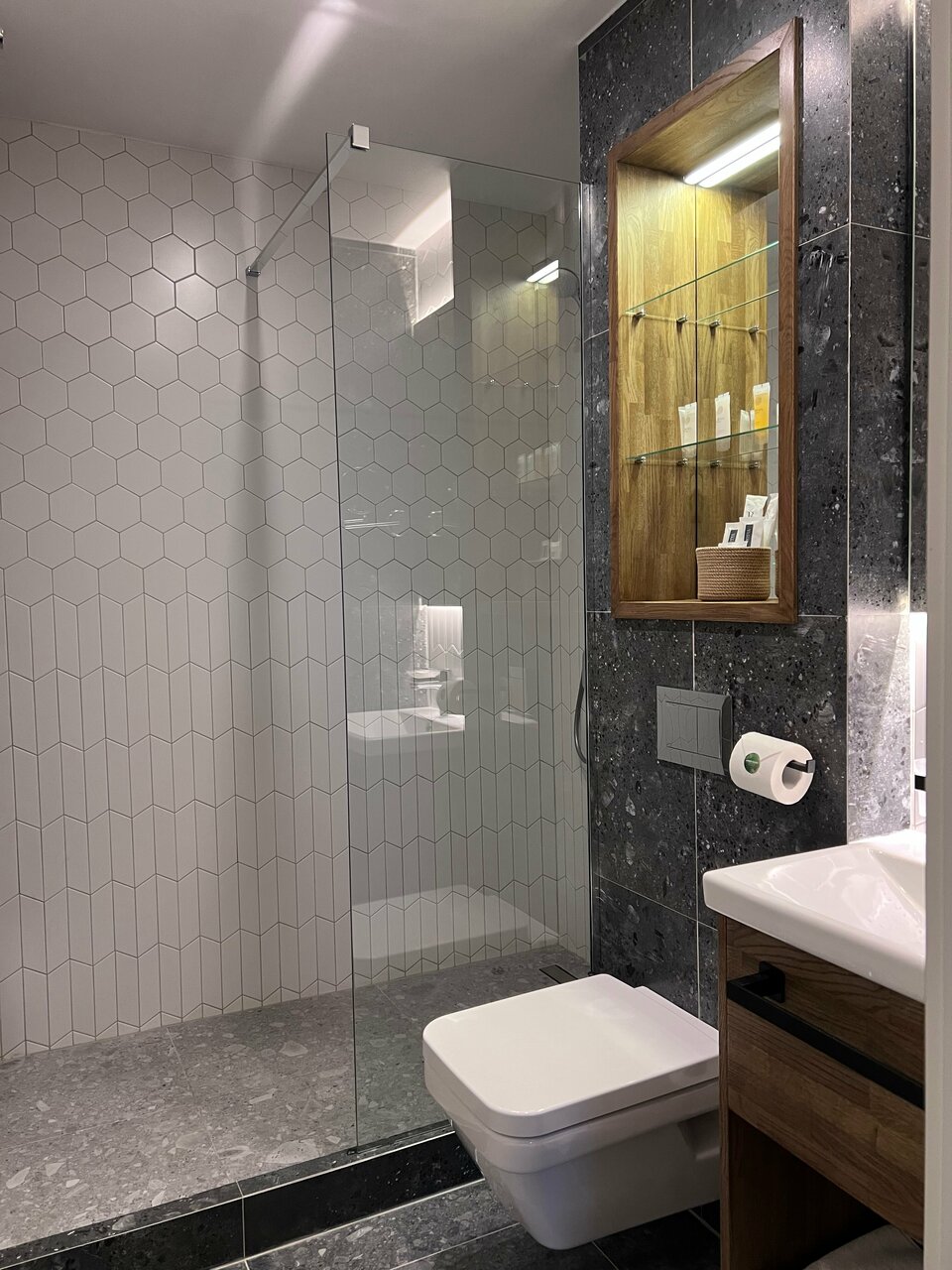 Отель в центре, выход прямо на пешеходную улицу, номера новые, косметика в душе от Davines, постель удобная, подушки на выбор, кофемашина есть, вода, капсулы кофе, чай. Бокал игристого на завтрак, еда вкусная и разнообразная. Снимали номер на мансарде. Номер маленький, но уютный. Всё новое. Очень классная душевая. Просторная и чистая. Полотенца, халаты, тапочки, куча шалабушек типа бритвы, щетки и т.п. Омрачило впечатление только не работающее СПА и сломанный лифт, из-за которого надо было на 4 этаж подниматься пешком еще и с чемоданами. Большое пожелание: сообщайте, пожалуйста, клиентам при бронировании, что у вас что-то не работает, вдруг это ключевой важный момент для них. Сначала написала отзыв и поставила 3 звезды, сейчас отпустило и решила поднять звезды, т.к. объективно отель хороший. Новый, чистый, уютный. Очень приятный персонал. Но за не работающий СПА до сих пор обидно)))