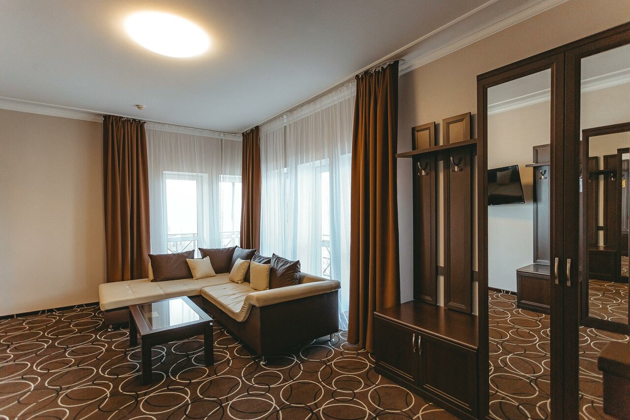 Улучшенный номер люкс в отеле 'Априори' с видом на побережье Балтийского моря. Площадь номера 40 кв.м., балкон, прямой вид на море, гостиная с большим диваном, большая кровать 180-200, халаты, тапочки, одноразовые гигиенические принадлежности, гель д
