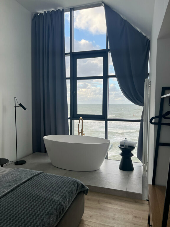 Наверно лучшие апартаменты в Зеленоградске. Вид потрясающий, панорамный, прямо на море. Интерьер — все новое, стильное и гармонично подобрано, в жизни выглядит так же как на фото. В апартаментах тихо, слышен в основном шум моря. Очень удобно реализован заезд/выезд (заезжал в 3 часа ночи в будний день, без каких либо проблем). Если еще раз окажусь в Зеленоградске, то точно знаю где остановлюсь.