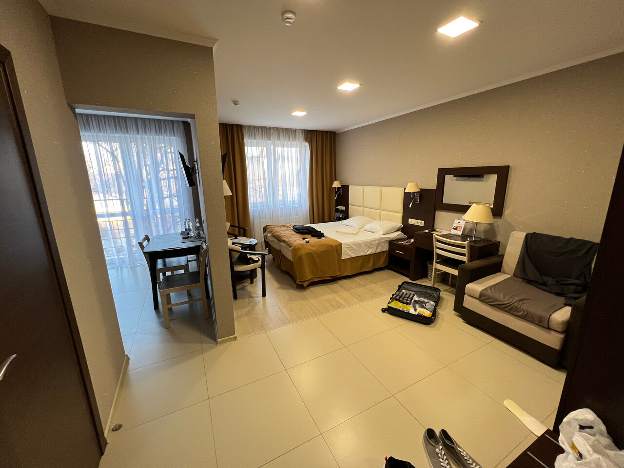 Проживали в марте-апреле 2022г., уборка каждый день, смена полотенец, небольшой балкон, хорошая цена. Поставили горшок и кроватку для 2-х летнего ребёнка, предоставили коляску. Завтраки в ланчбоксах. Есть отличные плюшки в виде массажного кресла и беговой дорожки, и бесплатный круглосуточный кофе. Персонал приветливый, со всеми вопросами помогали. Удобно расположен, 10 минут и на море.