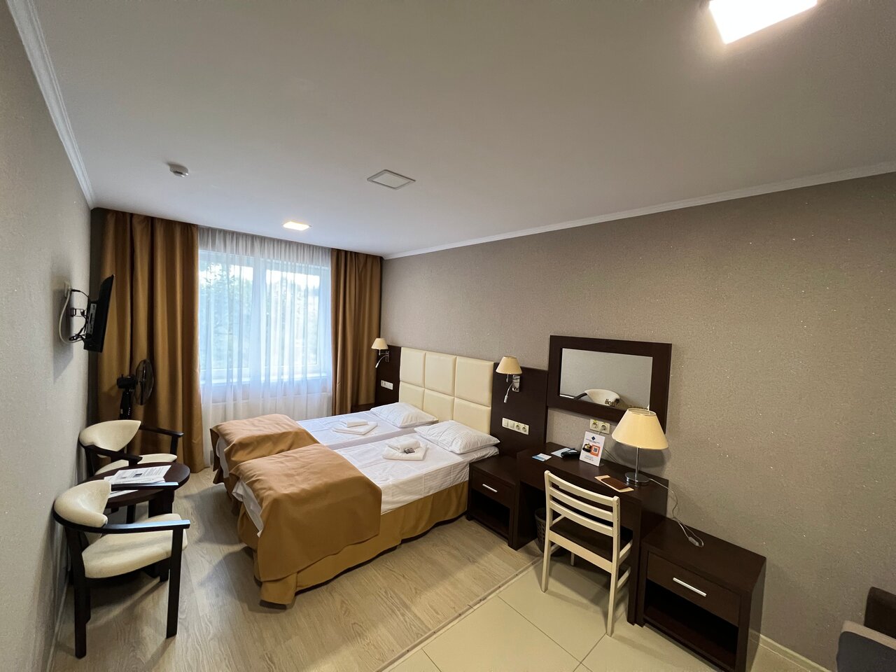 Отель очень понравился! Чисто, спокойно, тихо. Завтраки объемные, вкусные, каждый день разное Прям четко белки, жиры, углеводы В номерах своя кухня, отличный санузел. Приезжали в Зеленоградск на 2 дня, отелем очень довольны. Правда нет смарт ТВ, но мы же не телевизор приехали смотреть. Хотя с другой стороны зачем столько телевизоров в номере, если показывает только каналы и то плохо?))) Вай фай хороший, быстрый. Рекомендую!