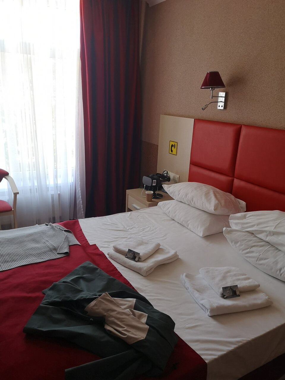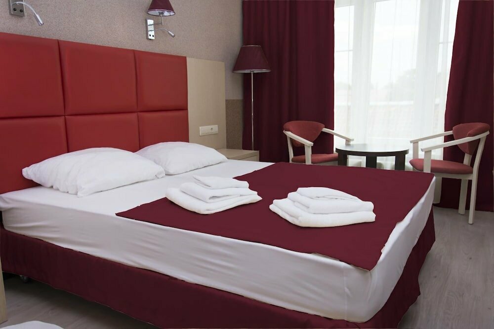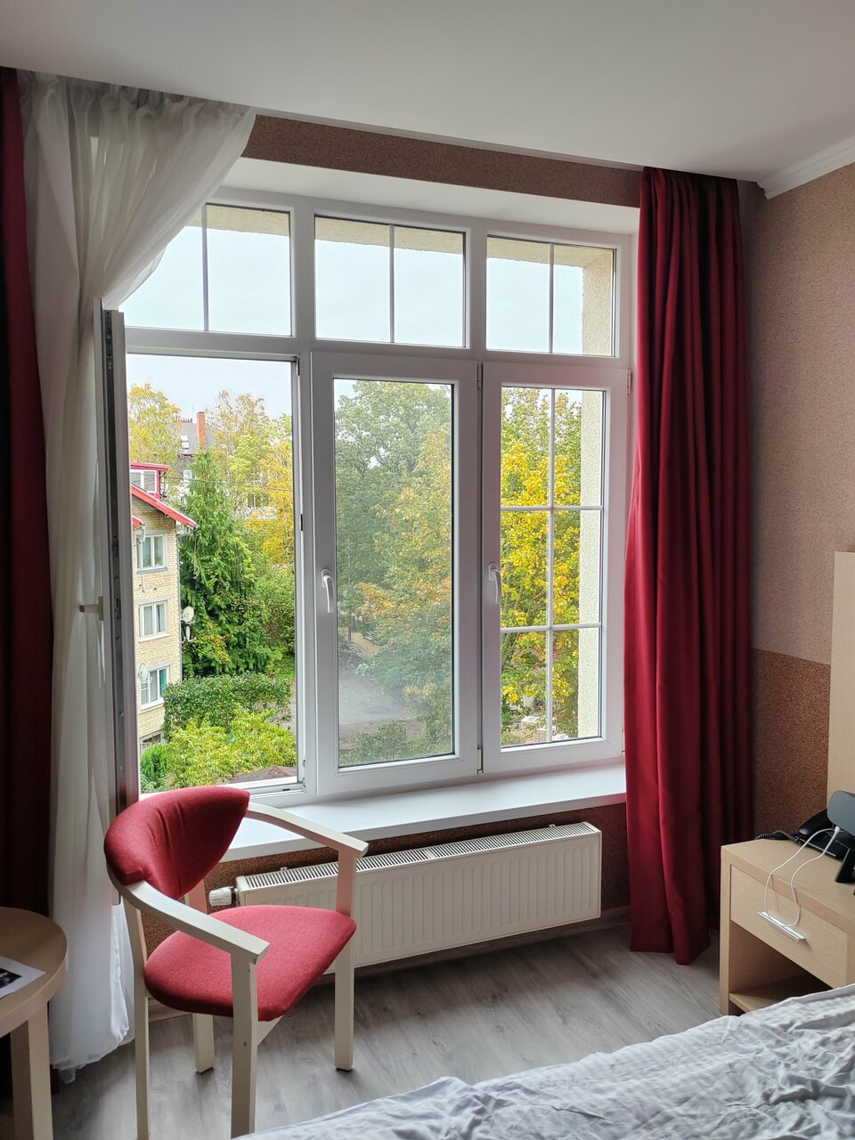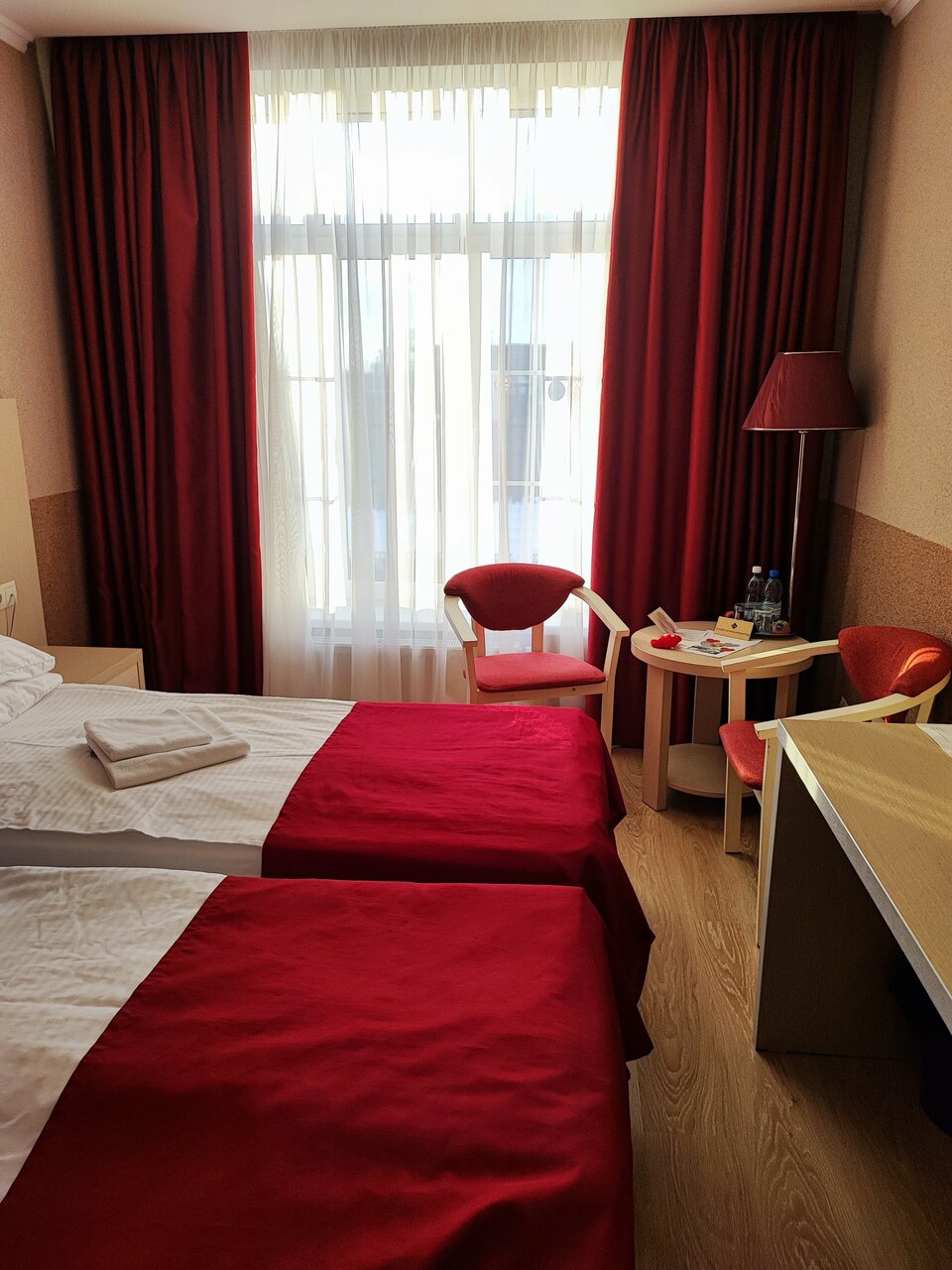 Хороший сервис, чисто, аккуратно. Вкусный шведский стол на завтрак. Велосипеды новые бесплатно в любое время! Уборка каждый день, вода в бутылочках в номере, чайник, кулера на этаже. Нормальный WiFi, отдельно для телефонов и ноута, телевизор, много каналов. Зонтиков может не хватить. Трансфер включен до Калининграда или аэропорта. Хорошее расположение, почти у центра, до моря 5 мин. Все понравилось.