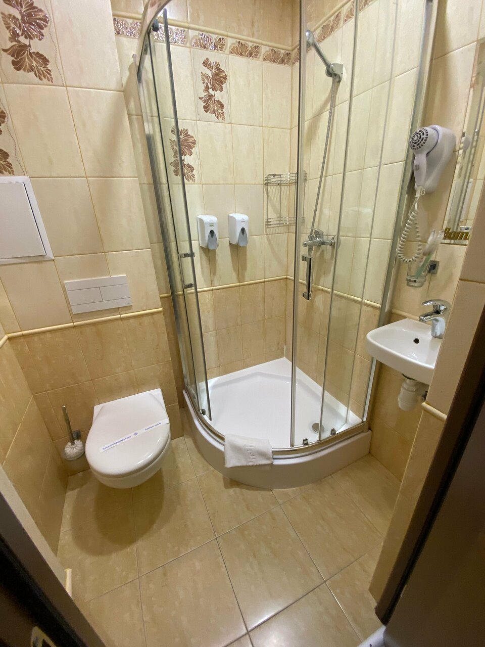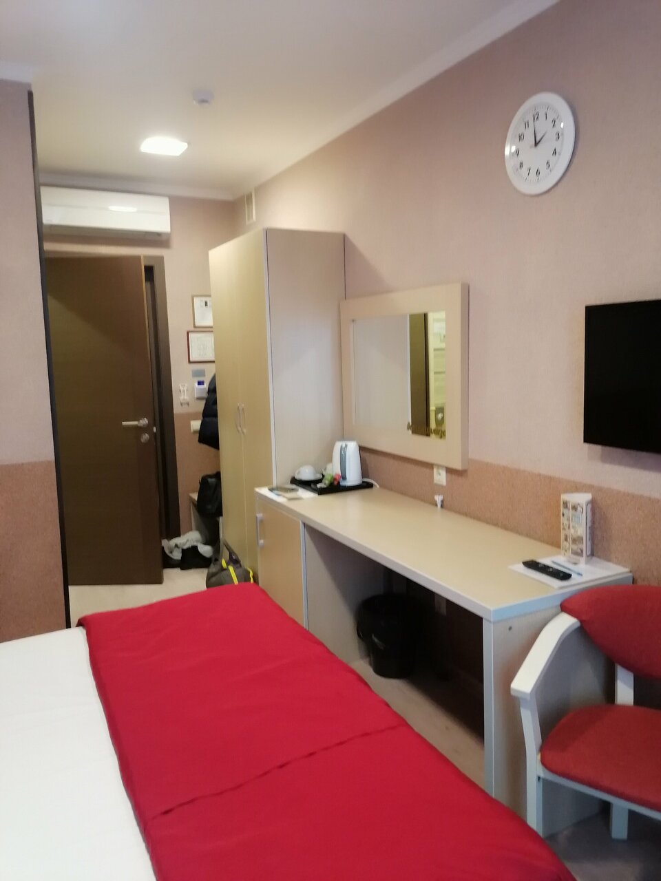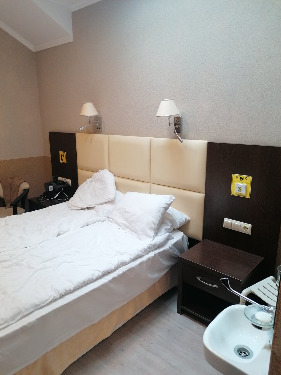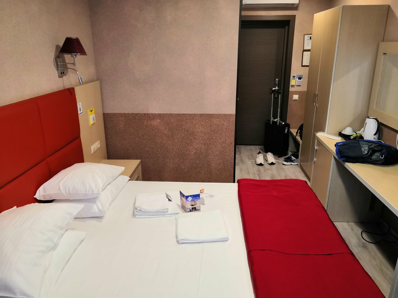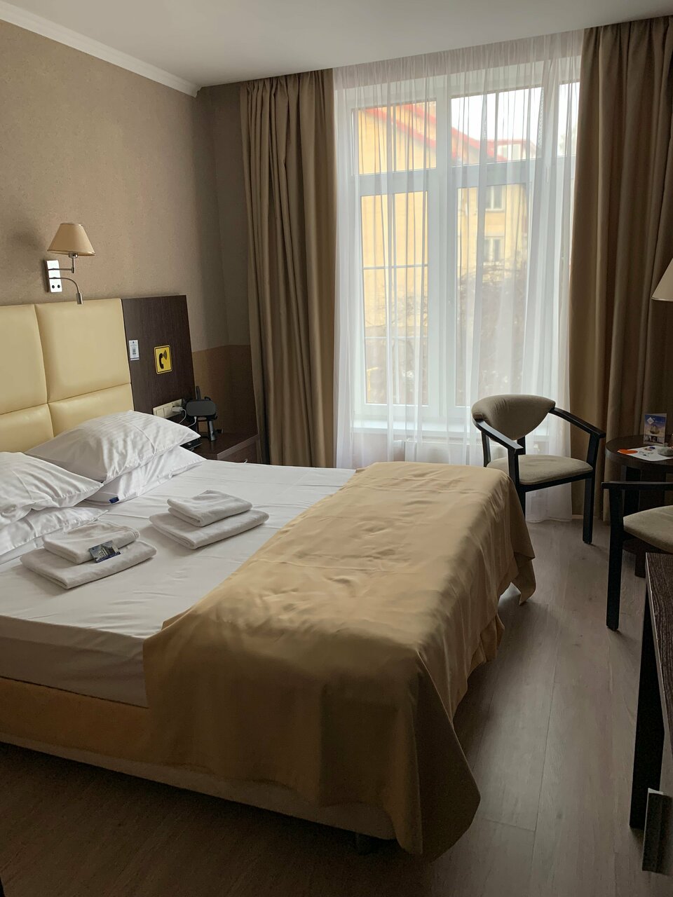 Плюс- самый центр. Очень удобная кровать. Плюсы на этом заканчиваются. В проживание входили завтраки. У администратора спросила совет, где можно поужинать. Получила 3 адреса. Самые забитые народом, на самых проходимых местах. Вообще-то не для этого спрашивала. Эти заведения и так известны. В результате нарезала круги усталая и голодная взяла выпечку в номер. Ужин-чай. Большая слышимость. До ночи в коридоре хлопали двери, работающая вентиляция из соседнего номера и т.п. На завтраке, который нужно было обозначить по времени при заселении были стандартный набор-омлет, сосиски, каша, творог. Правда какие то мужчины в верхней одежде (зима) заходили на кухню. Брали кофе из кофемашины между гостей в тапочках. Перед выездом нужно было принять душ. Не тут то было! Горячая вода КОНЧИЛАСЬ! По словам администратора:’сразу всем понадобилась горячая вода’!?!?!