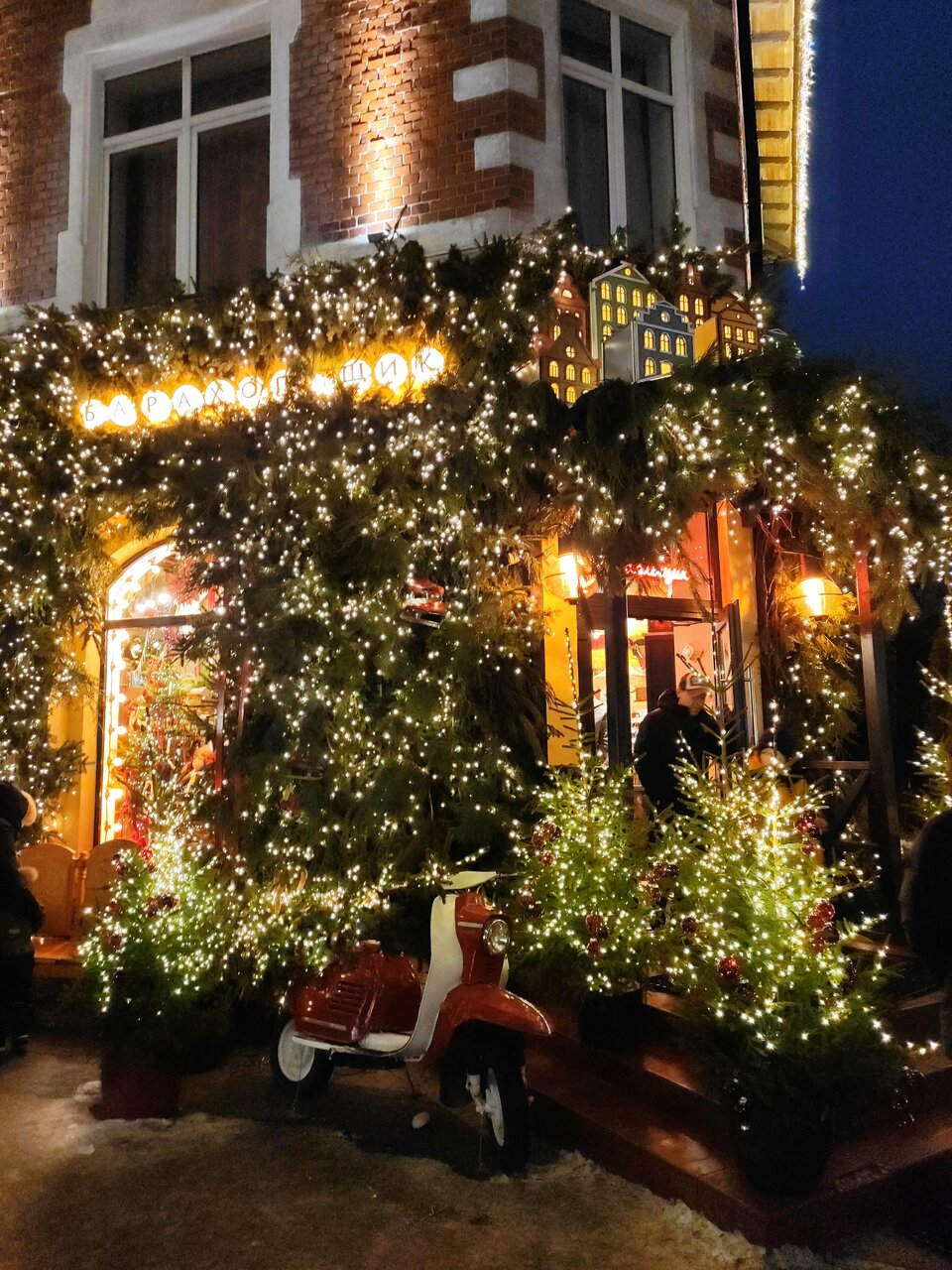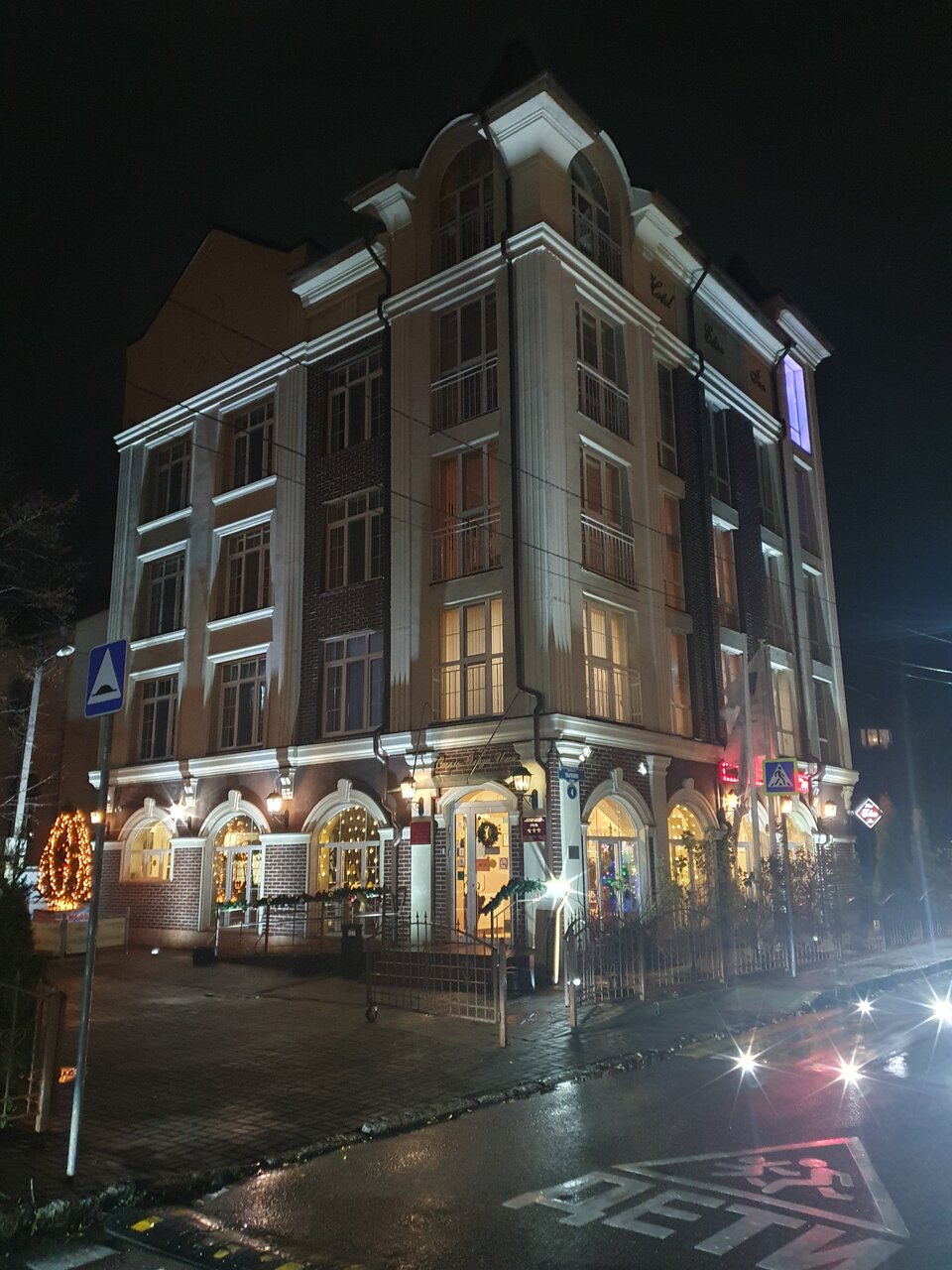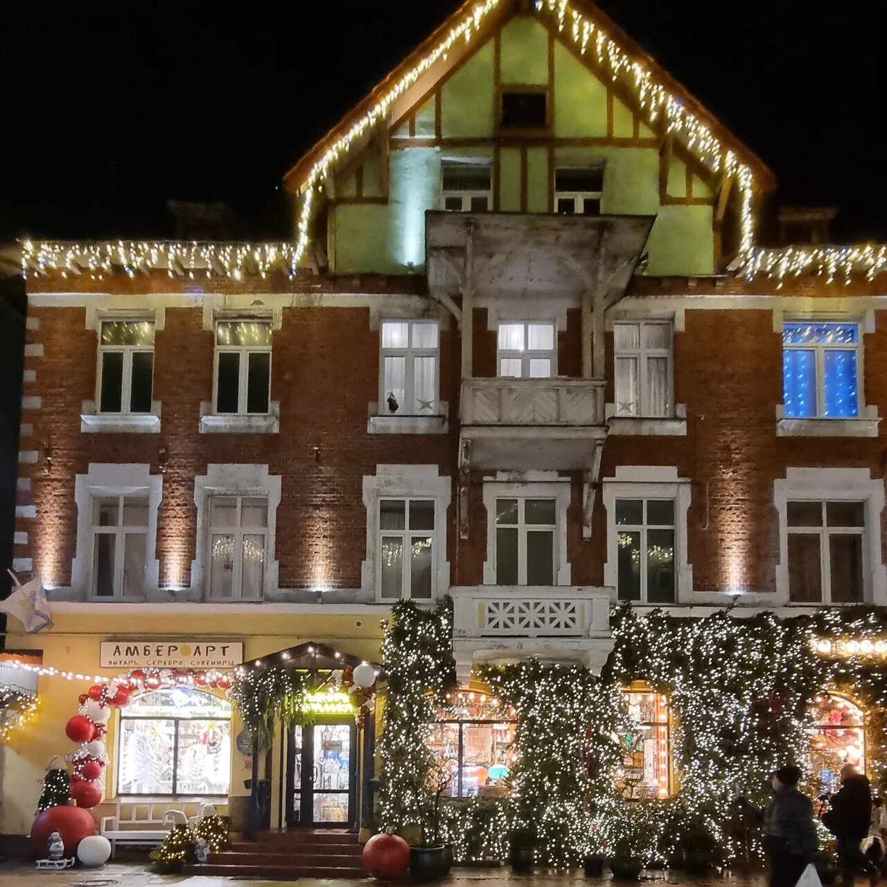Очень атмосферно, чисто, уютно, номер двухместный с двуспальной большой кроватью, холодильник, чайник, фен, зубные принадлежности. В номерах тихо ( единственно может быть шум от наиболее активных соседей из коридора, но ночью все спокойно). Завтраки разнообразные, кому что нравится, вкусная овсянка. Есть бизнес-ланчи за 480 рублей, очень сытные. Отель в 10 минутах от набережной и в минуте ходьбы от Курортного переулка. В начале декабря уже украшен по новогоднему и создаёт соответствующее настроение. По отзывам других проживающих — маленькая раковина, но для умывания и чистки зубов достаточно. Если буду ещё в Зеленоградске, скорее всего выберу этот отель опять.