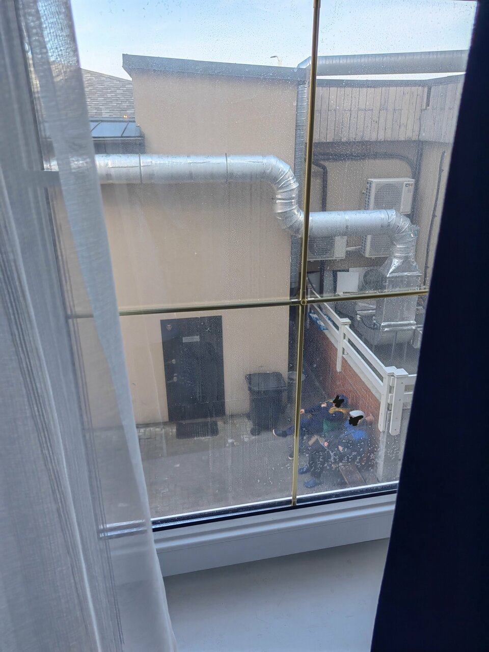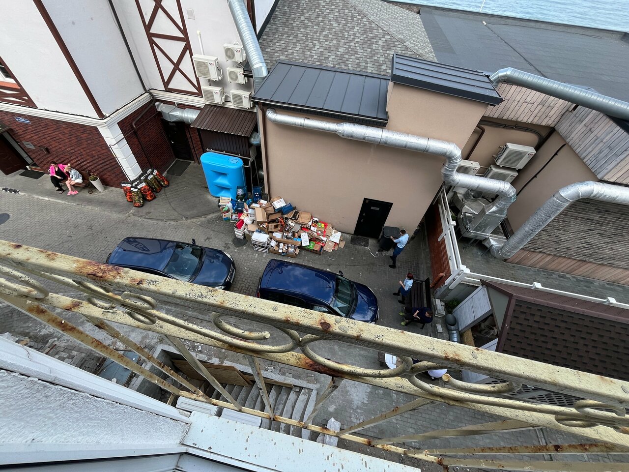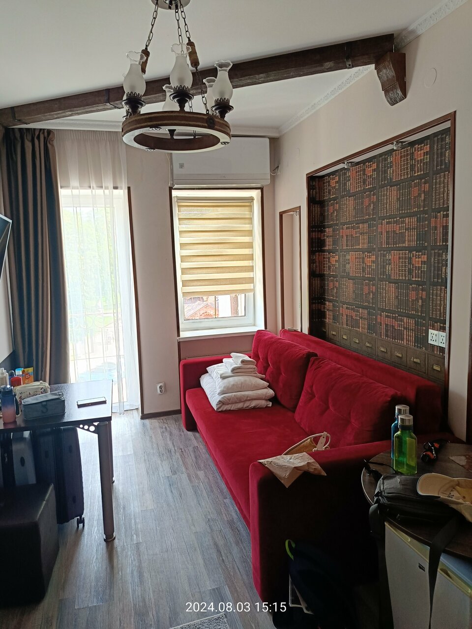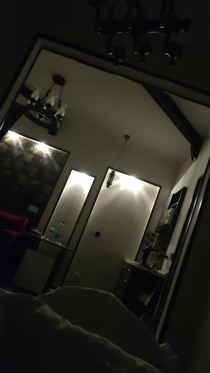 По моим скромным ощущениям номер никак не тянет на те шесть с небольшим тысяч, которые мы за него заплатили. Единственное положительное впечатление — это вид на море. Первое, что ощущаете при входе в номер это въевшийся в каждую вещь запах канализации. Вентиляция не работает, вентилятор не закреплён, из стены торчат два оголенных провода. Хотя в номере и чисто, но к заселению его никто не готовил. В номере чайник и литр газированной воды. Нет ни чая ни кофе, но есть паутина, органично свисающая с потолка.