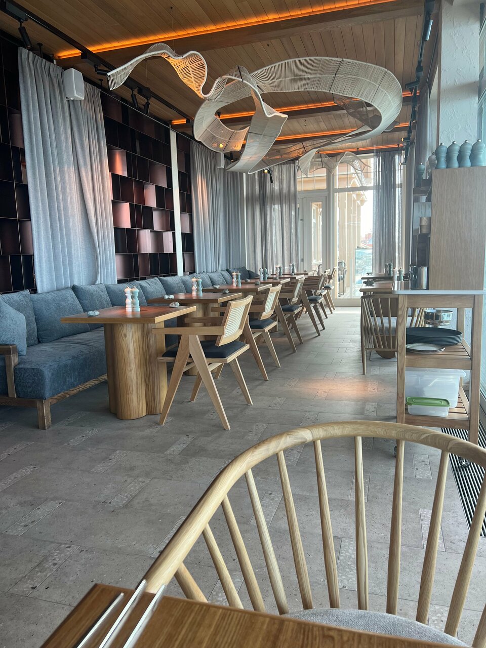 Место расположения — козырное, интерьер странный, еда в ресторане дорогая, но не очень вкусная. Главный минус — они испортили пляж! Теперь по пляжу мимо них не пройти, а надо подниматься на галерею.