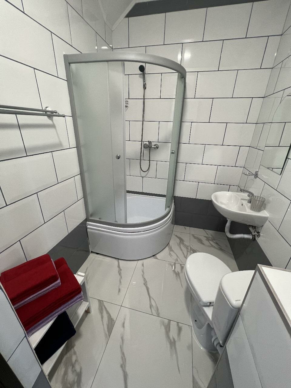 - Тёплые полы в ванной.; Хорошая планировка (кухня, туалет, кабина, место для детей).; Чистота и порядок.; Большой и просторный номер.; Удобное расположение (близко к ж/д станции, морю, магазинам).