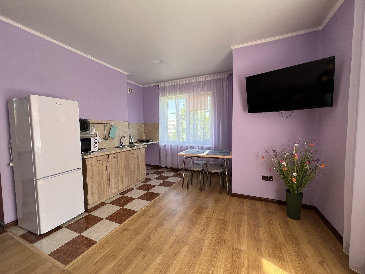 Отдыхали в августе 2024г. Очень понравилось. Номер в виде квартирки-студии. Есть все необходимое: посуда, холодильник, микроволновка, эл. чайник и плитка. Рядом продуктвые магазины, аптека, до пляжа 5 минут. Дарья и Марина, спасибо за внимание и ваше доброжелательное отношение.