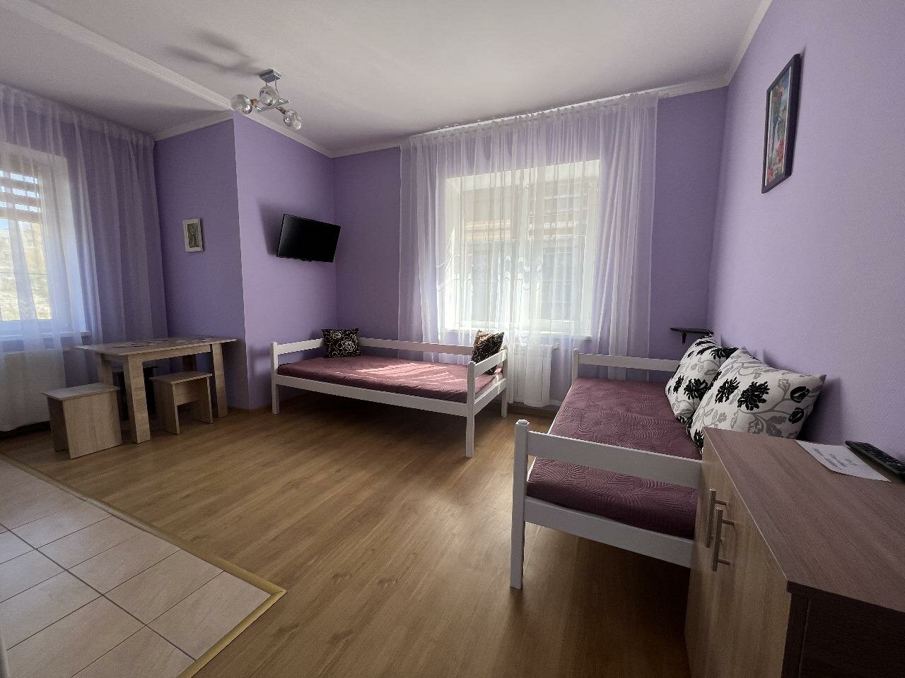 Отдыхали здесь с 16 по 19 июня 2023 года. Номер №4 на третьем этаже. Очень чистый, просторный, с мини кухней (кухонная утварь) номер. Удобные матрасы. Любой вопрос решался сотрудником Дарьей очень оперативно, отдельное ей спасибо. До вокзала пешком минут 10-15, до моря 15-20 не быстрым шагом. Рядом есть магазины. Цена и качество — супер.