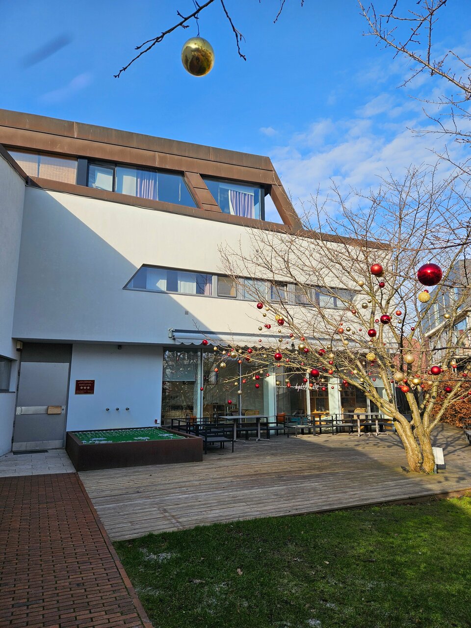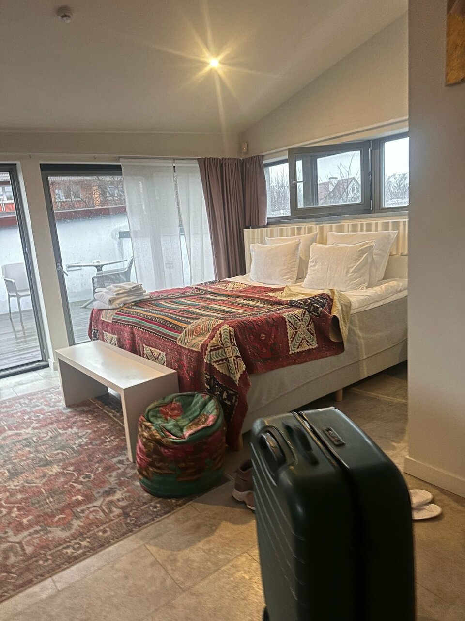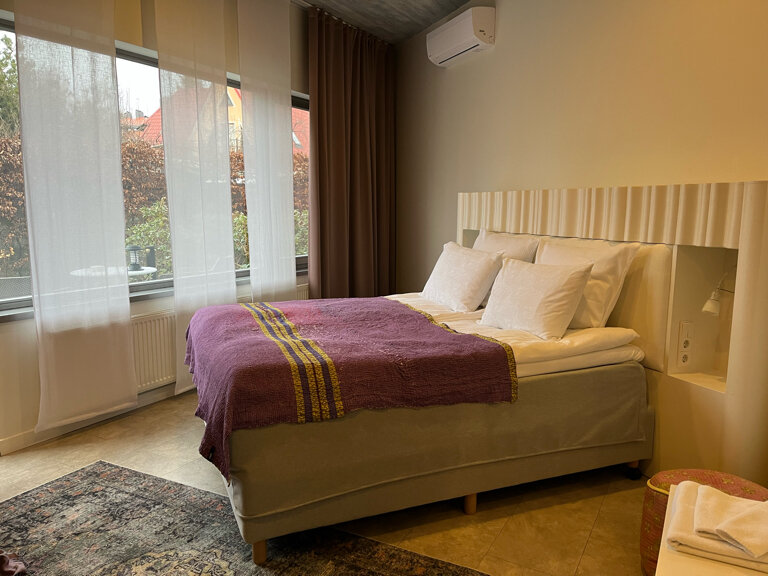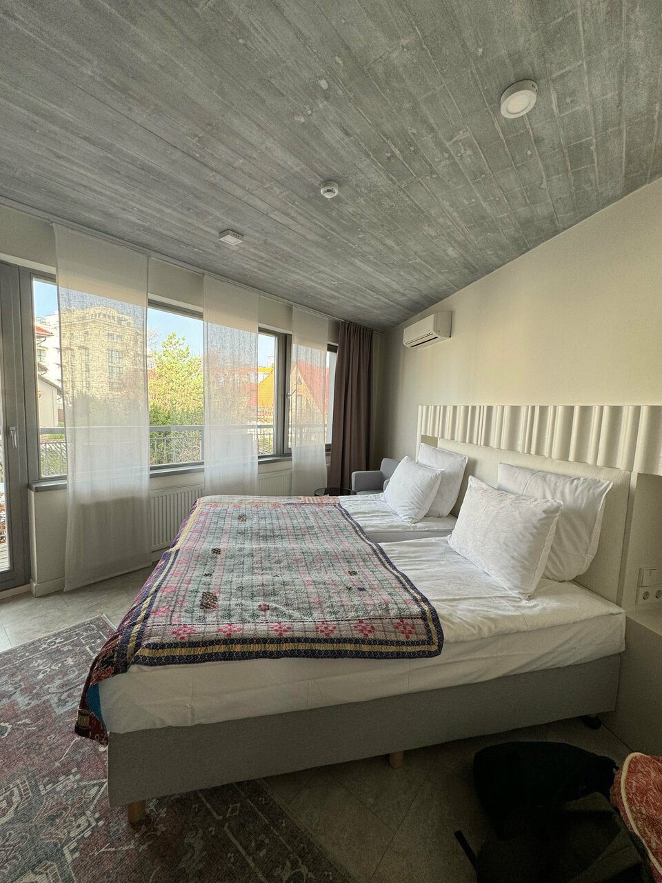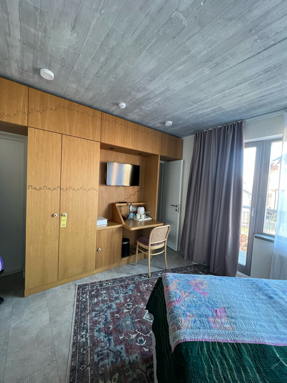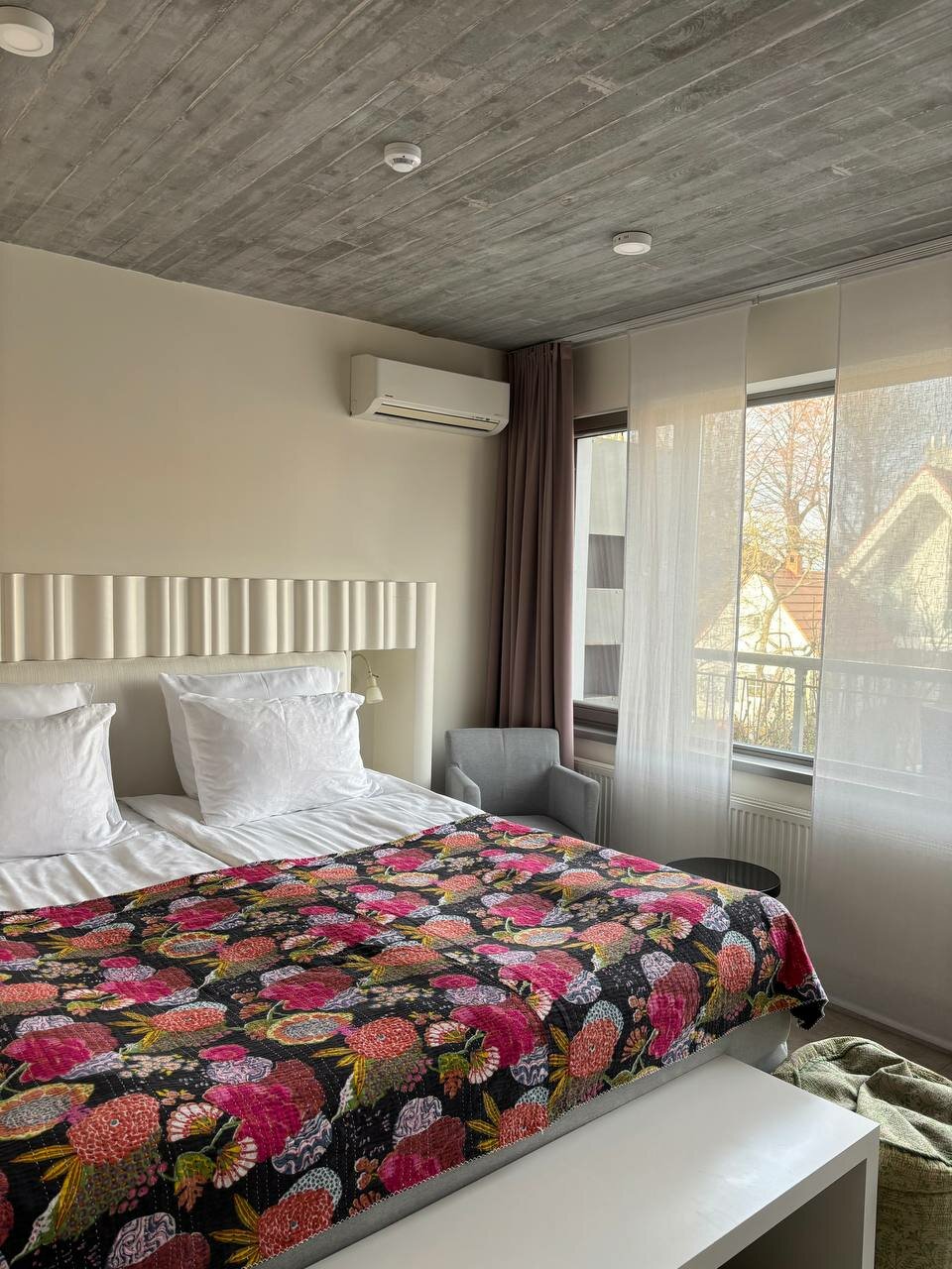 Очень милый отель в близкой пешей доступности до моря и пешеходного центра Зеленоградска( минут 7-10) расположен в тихой улице, имеется парковка. Завтраки очень вкусные, по предзаказу готовит повар из выбранного накануне блюда, плюс в наличии шведская линия, вкусный кофе и круассаны. Наш идеальный номер был на первом этаже с террасой, в наличии были даже гамаки. Халаты, тапочки, вся косметика и зубные наборы в наличии. Кровать удобная. Персонал приветливый. С удовольствием можно остановится в следующий приезд.