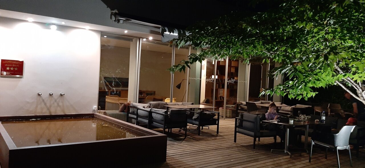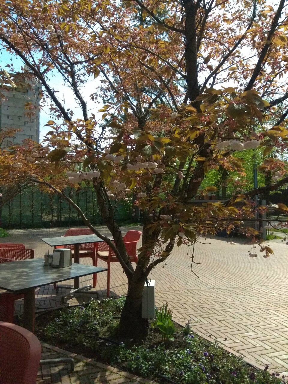 Милый,уютный отель.Спокойно, атмосферно,вкусно.Цветущая в мае сакура впечатляет.