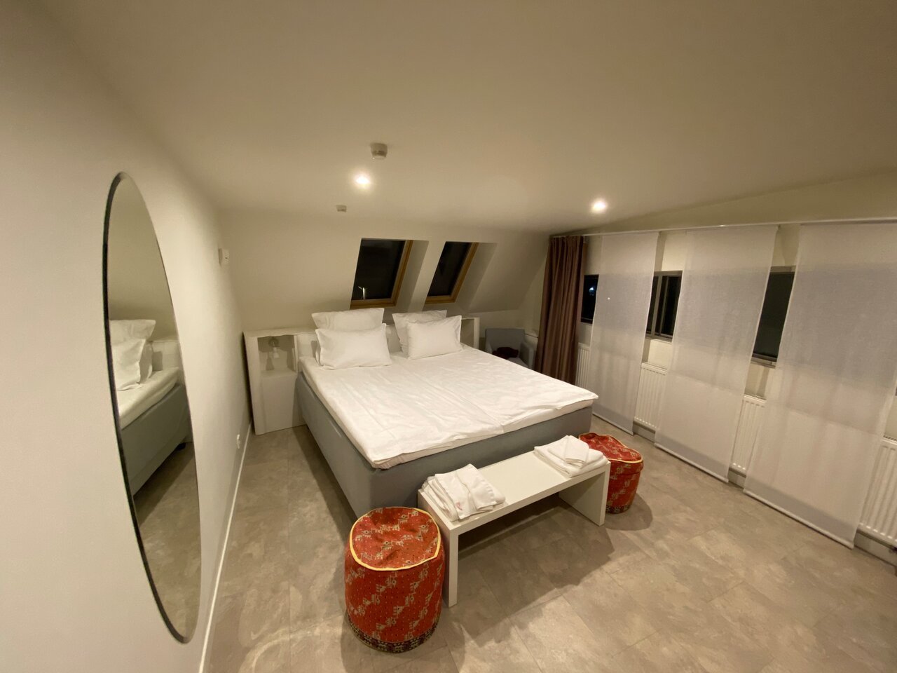 Номер 23 кв м с душем, большой кроватью, с возможностью расположиться на доп месте.Завтрак включен в стоимость!В номере кухня, вся необходимая посуда, холодильник, телевизор, фен, халаты, тапочки, гигиенические наборы.