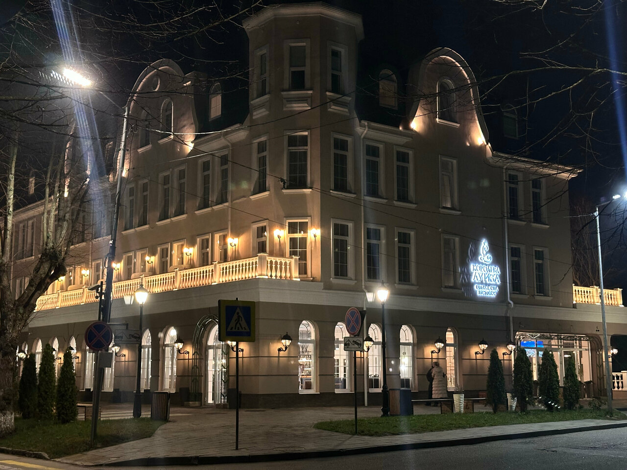 Гостиница «Королева Луиза» расположена в Зеленоградске по адресу: Московская улица, 50. Современный отель, открытый в 2022 году, предлагает комфортное размещение в номерах с кондиционером, Wi-Fi, мини-баром и санузлом. К услугам гостей — ресторан, кафе, бар, СПА-центр с сауной, хаммамом и джакузи, тренажёрный зал, салон красоты и конференц-зал.