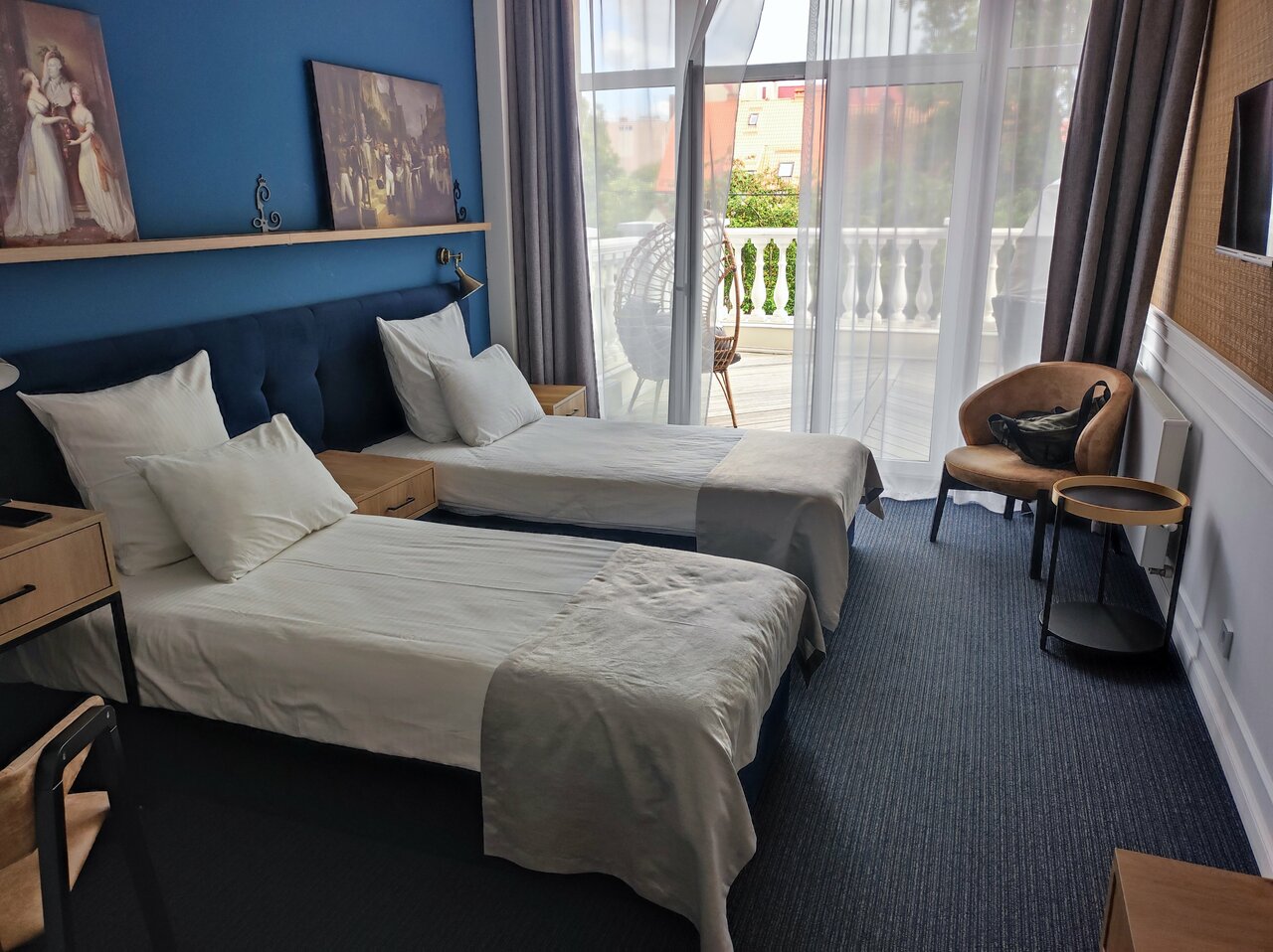 Отдыхали семьей в конце августа 2023. Красивый отель, ресторан. Вежливый и грамотный персонал. С первой минуты чувствуется уважение, внимание сотрудников. В номере есть все необходимое. Приятно удивило количество полотенец — они белоснежные и их очень много! Видно, что руководство не экономит! В номере чайник, мини-кофемашина, капсулы, чай, холодильник. Хорошие завтраки. Я очень довольна! Удобное месторасположение. Близость Куршской косы.