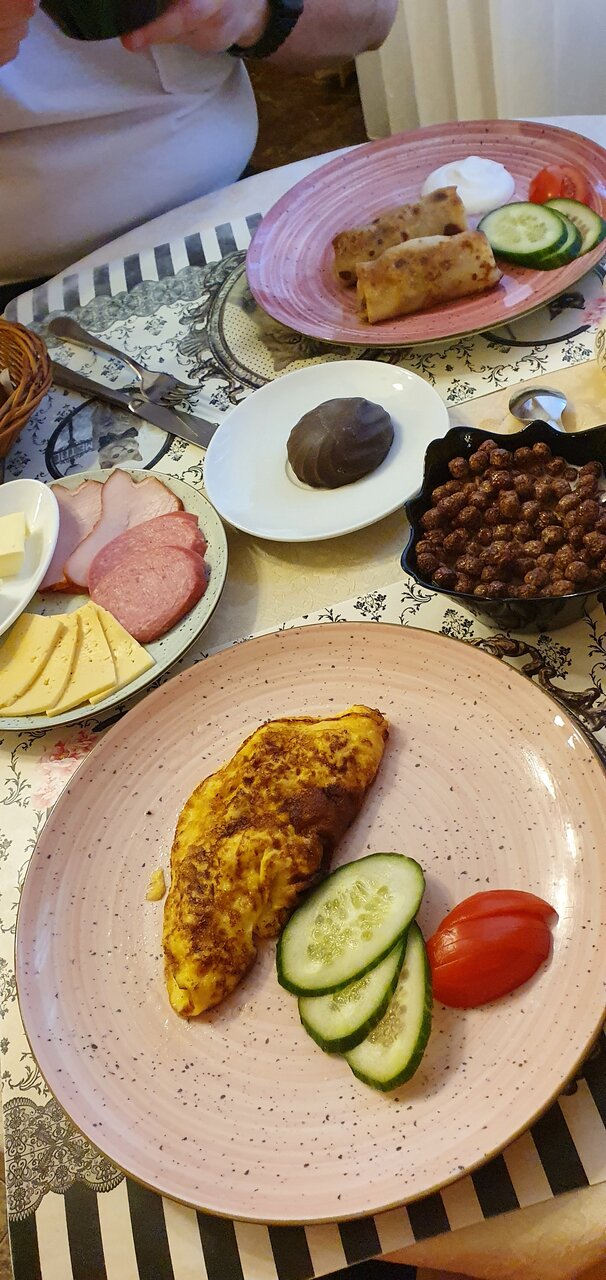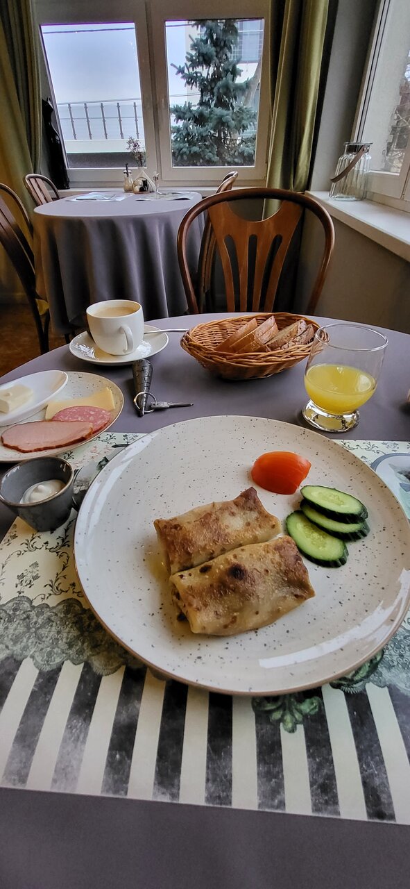 Уютный отель, все по-домашнему. Свежий реморт в номерах, все чисто. Сытный и вкусный завтрак (можно выбрать из пяти видов) входит в стоимость. До моря 2 минуты, до электрички в Калинингад — 5 минут, до Курортного проспекта — 6-7 минут. Рядом известный ресторан Облака. А вот бассейн (который включён с стоимость пребывания) очень холодный. Специально в него записались, а дети не стали даже окунаться — мне кажется градуса 23 вода, а может и холоднее была. Жаль, могли бы сделать и потеплее. Общая оценка ‘5-‘.