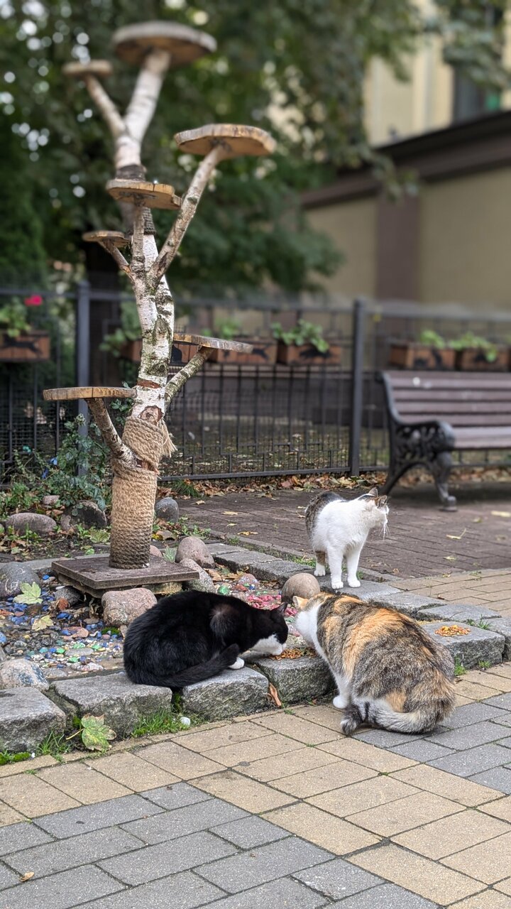Понравилось отношение у животным, Кошки всё красивые. Обратила внимание на теплоту к ним местных жителей, которые постоянно их подкармливают. Сам домик красиво сложен. Немного было ‘луж’ от их естественных нуж, но надеюсь, что это всё регулярно убирается. Сама люблю животных, поэтому обращаю внимание на такую доброту со стороны людей