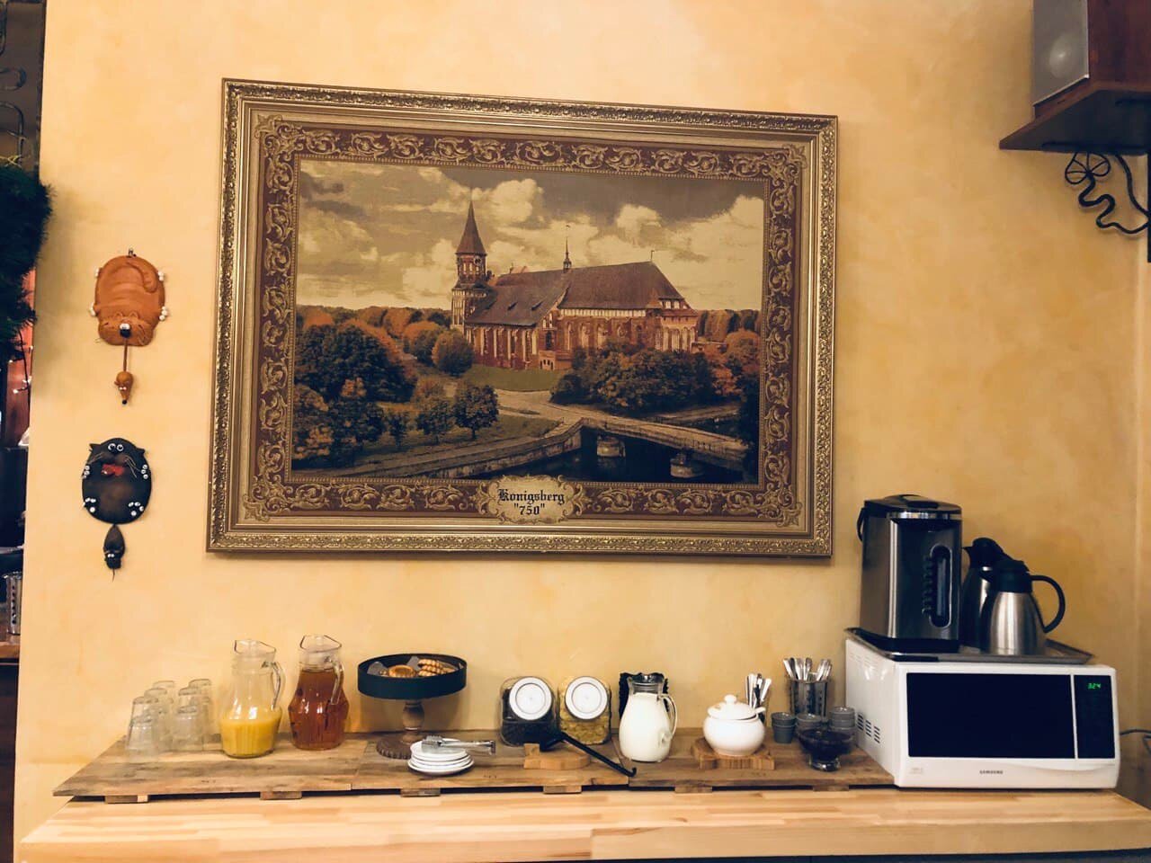 Впервые посетила Зеленоградск. Остановилась на сутки в отеле Кошкин дом. Расположение отеля — отличное , 30 секунд и у моря. Завтраки вкусные , есть вегетарианский вариант завтрака. Уютный и чистый номер , открыв окно слышен шум прибоя Можно вне номера , посидеть почитать книги (представлены на выбор в вестибюле ), уютные столики в гостиной с прекрасным видом . Благодарю