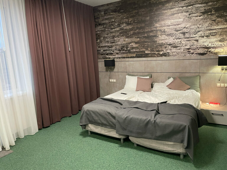 Отель вообще супер, номер чистый просторный, кровать шикарная, на этаже в общем доступе кухня( чай, кофе, лед, холодильник, микроволновая печь, посуда) вообщем можно было заварить чай и попить его в номере) так же была терраса( но мы ездили зимой, поэтому там ничего не стояло, можно было выйти посмотреть на городок. Завтрак- заранее говоришь что хочешь из основного меню(на выбор было несколько блюд) а сам шведский стол включал в себя овощи, фрукты, мясная и сырная нарезка, тортик к чаю, по вкусу вроде всё супер было))