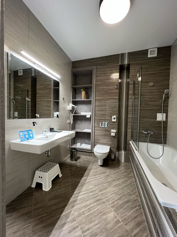 Очень хороший отель. Идеально чистый номер. Вежливый персонал. Учли все пожелания при бронировании. Завтрак континентальный, по меню, но нам было достаточно. Еда вкусная и свежая. Есть кухонная зона с микроволновой, посудой, чай и кофе круглосуточно бесплатно. При заезде в день рождения подарили шампанское. Было очень приятно.