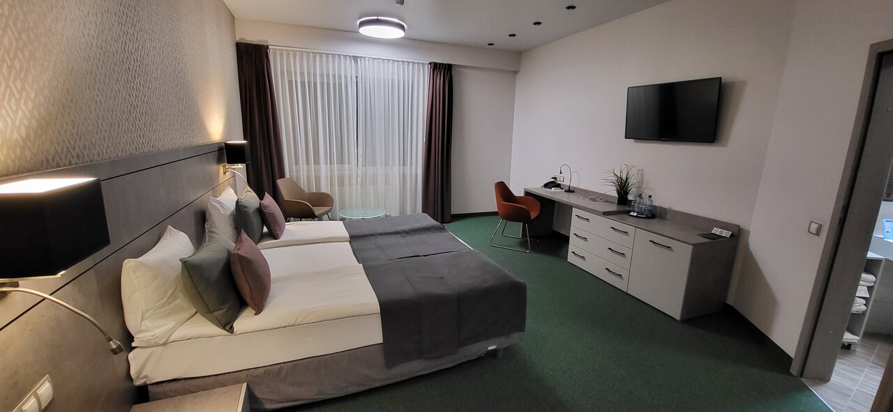 Номера большие и уютные,персонал очень отзывчивый,в первый же день у нас сломался телевизор(пропало изображение,но остался звук),так нам тут же с извинениями вручили сертификат на бесплатное посещение 4х музеев,и предложили переселить в другой номер завтраки очень сытные ,очень порадовало то,что целый день чай и кофе бесплатно в неограниченном количестве ,в самом комплексе есть боулинг,и два музея,дочке очень понравилось