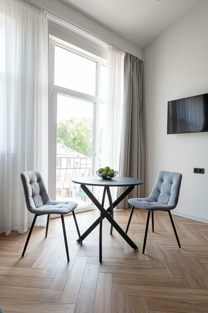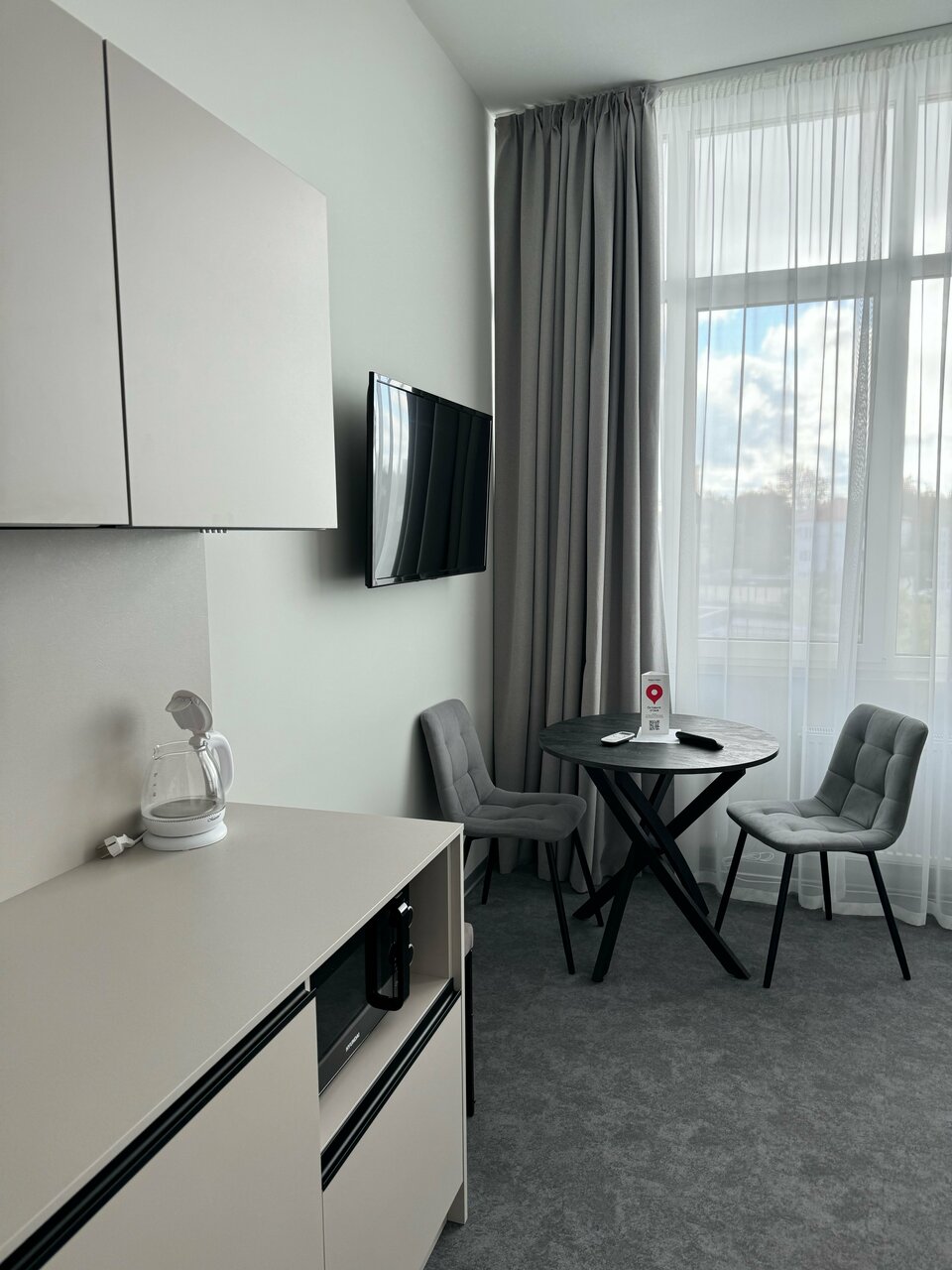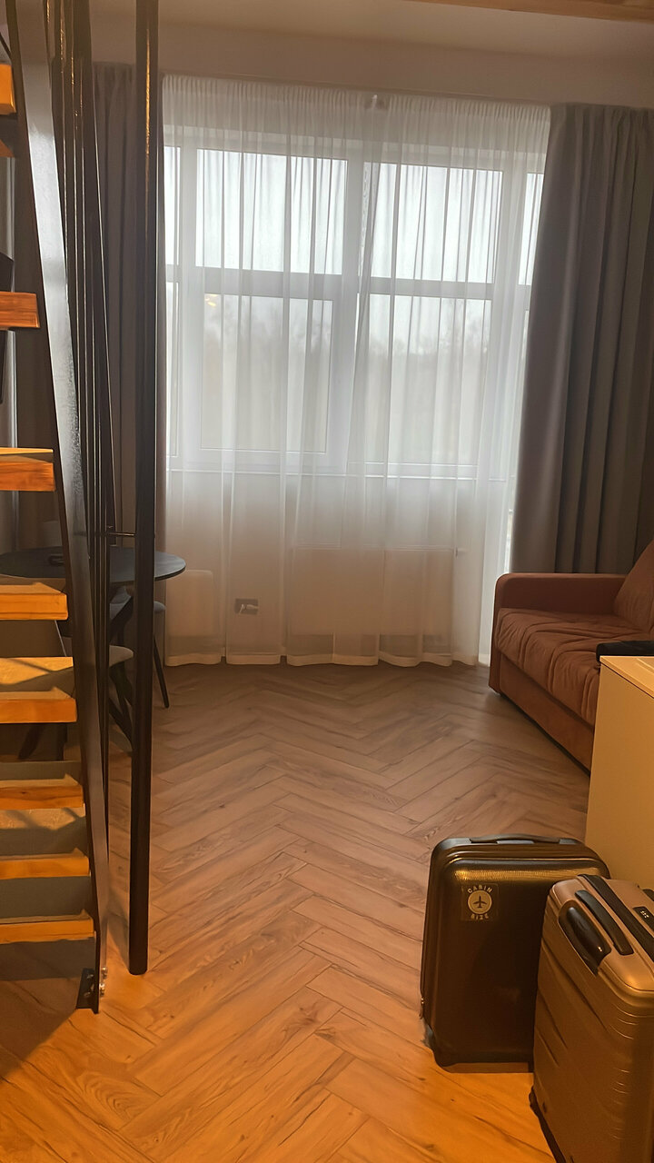 Для меня это был отличный отель, номер двухуровневый, что добавляет романтики ко сну. В номере удобно, чисто, есть все необходимое. Несмотря, что это апартаменты, замена полотенец происходит почти ежедневно (при вышей необходимости); с 20:00 в отель можно войти только по коду, что очень удобно, нет никаких посторонних; до моря 5 минут прогулочным шагом, вы сразу в центре, откуда можете выбрать в какую сторону прогуляться или выбрать поездку в Калининград, так как вокзал рядом (2 минуты, поезда новые и их не слышно вообще); так же в этом здании на углу кофейня Королевский пекарь, с ежедневной свежей выпечкой и вкусным какао. Вообщем, рекомендую 😉
