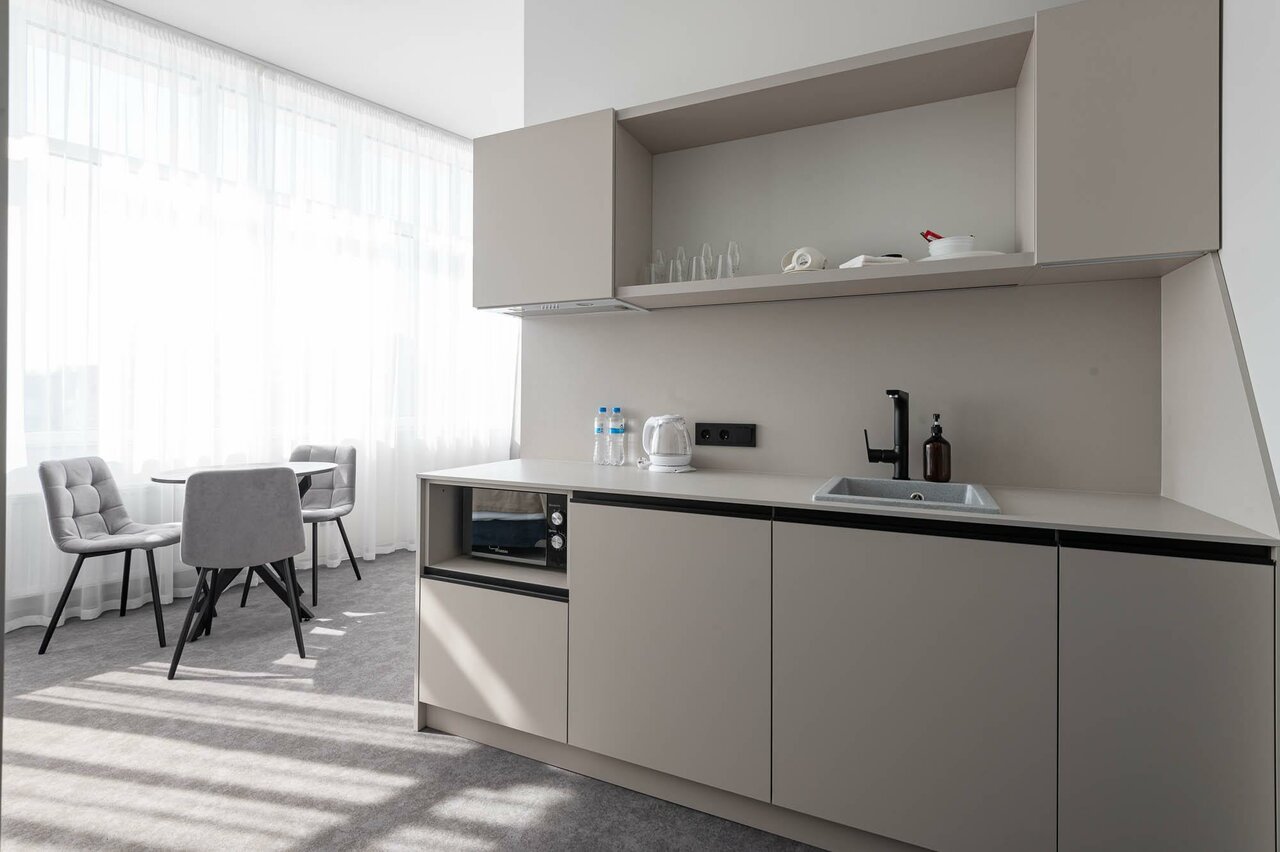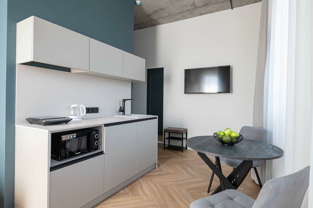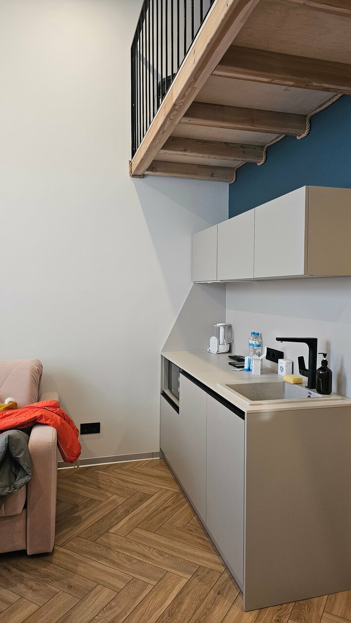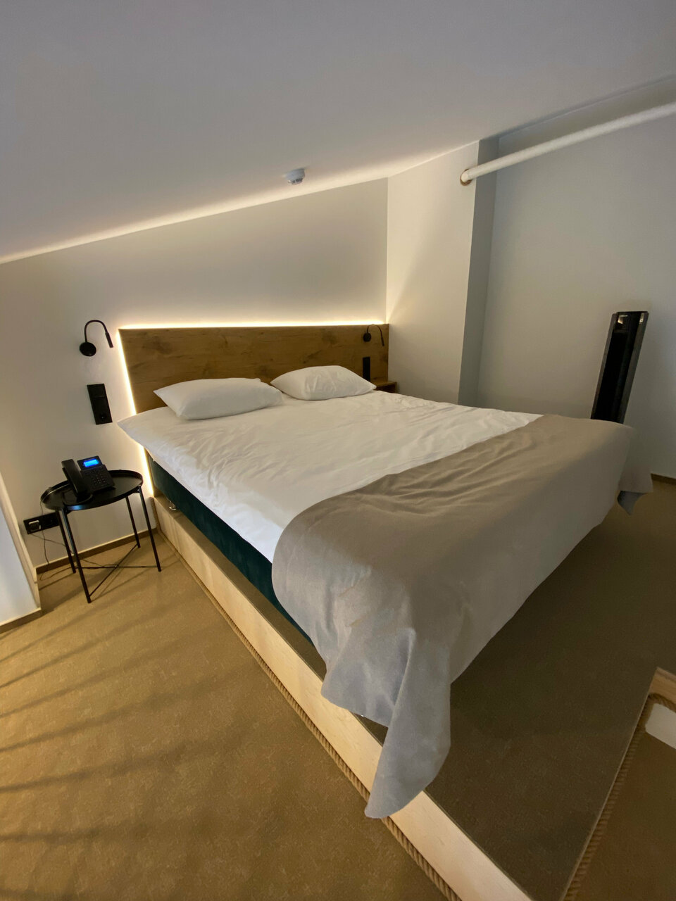 Для меня это был отличный отель, номер двухуровневый, что добавляет романтики ко сну. В номере удобно, чисто, есть все необходимое. Несмотря, что это апартаменты, замена полотенец происходит почти ежедневно (при вышей необходимости); с 20:00 в отель можно войти только по коду, что очень удобно, нет никаких посторонних; до моря 5 минут прогулочным шагом, вы сразу в центре, откуда можете выбрать в какую сторону прогуляться или выбрать поездку в Калининград, так как вокзал рядом (2 минуты, поезда новые и их не слышно вообще); так же в этом здании на углу кофейня Королевский пекарь, с ежедневной свежей выпечкой и вкусным какао. Вообщем, рекомендую 😉