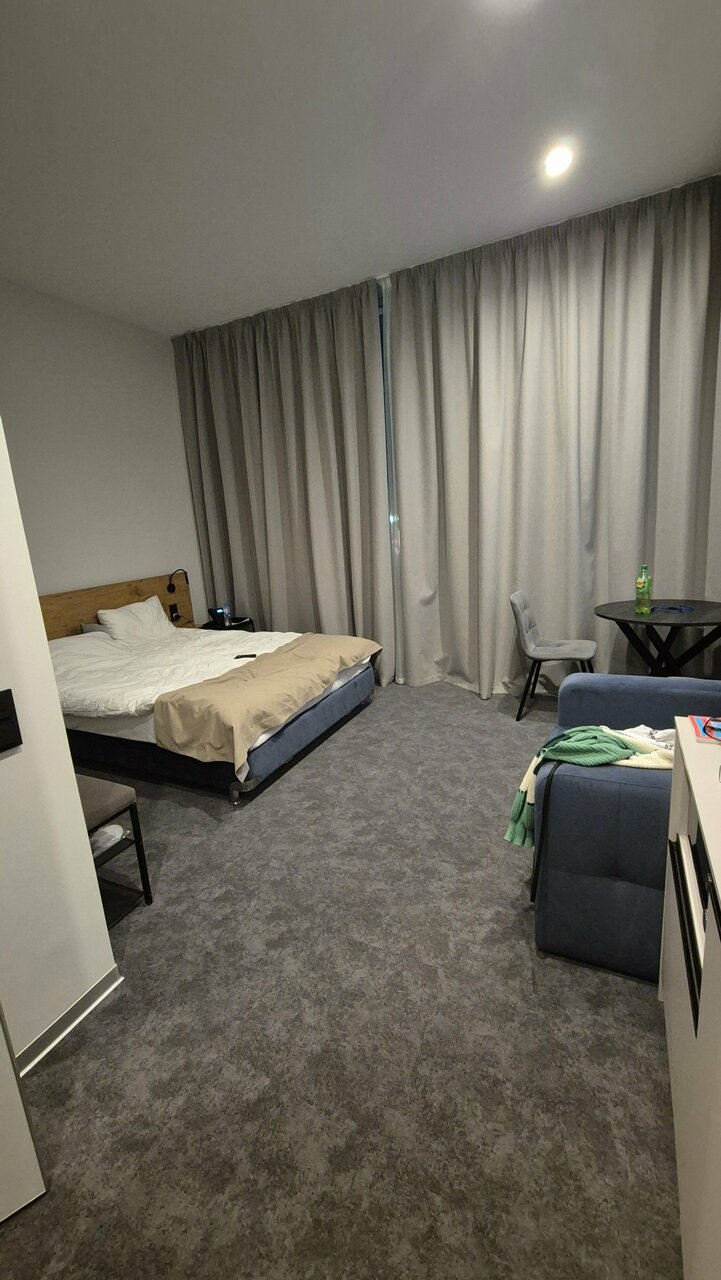 Бронировала двухуровневый номер с балконом в отеле на Новогодние праздники вместе с питомцем. По приезду встретила очень доброжелательная администратор, в номере чистота и уют, современный лаконичный интерьер, для хвостика были приготовлены лежанка и миски, что говорит о том, что всем гостям рады и всех ждут (мелочь, а приятно)! Отличное расположение отеля-центр города, все в шаговой доступности: набережная и море, курортный проспект, рестораны, магазины. В общем рекомендую!