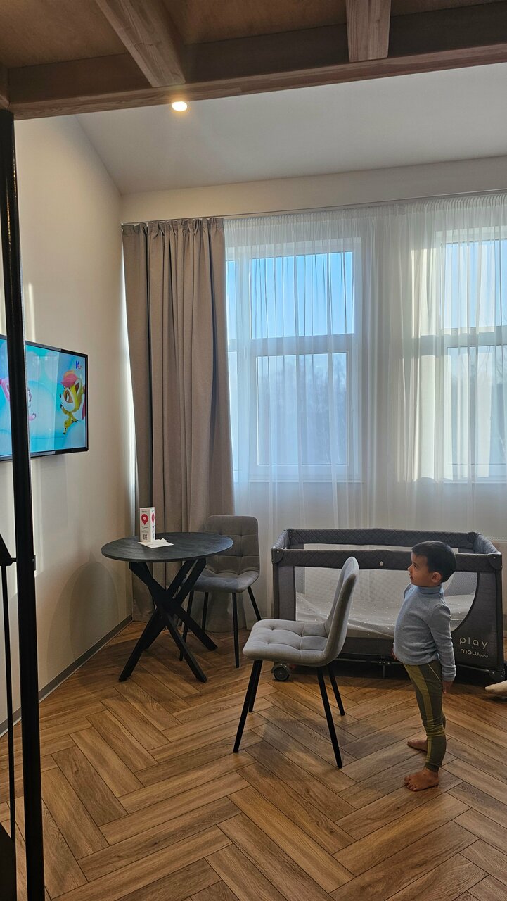 Отель очень неплохой, месторасположение — огонь огнище. Рядом рынок, кинотеатр, жд вокзал, остановка автобуса, на первом этаже продуктовый магазин. Внутри очень чистые помещения с набором всего необходимого: от чайной продукции до электрической плитки. Жили в январе, цена была невероятно низкой -3500 за двухуровневый номер. Прожили как короли. Персонал волшебный, вежливый, отзывчивый. Из минусов- нет завтраков. Но при прочих плюсах это вообще не минус. Любителям атмосферности- покой охраняет хомлин. Самый настоящий, сияющий от важности задач. А напротив отеля находится секретное окно в мечту. Ни секунды раскаяния по поводу выбора места.