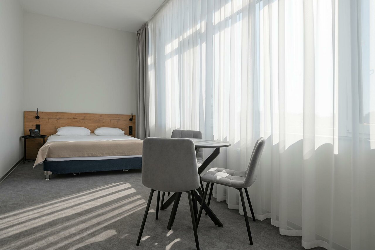 Очень чистый ,новый отель ,стильный ,все удобства ,находится в самом центе Зеленоградска ,на первом этаже Спар,что очень важно ,море в пяти минутах ,персонал приветливый и внимательны ,хочется вернуться в этот отель снова ,хотя 3 звезды ,но по факту тянет на твёрдую четверку .