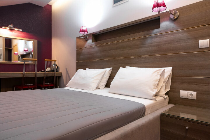 Этот эксклюзивный гостиничный номер с собственной сауной обладает большим количеством преимуществ: просторная двуспальная кровать, рабочая зона, Wi-Fi и Смарт ТВ, фен, холодильник, чайная станция, сейф. Но истинная жемчужина номера — личная сауна.