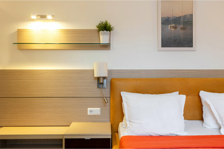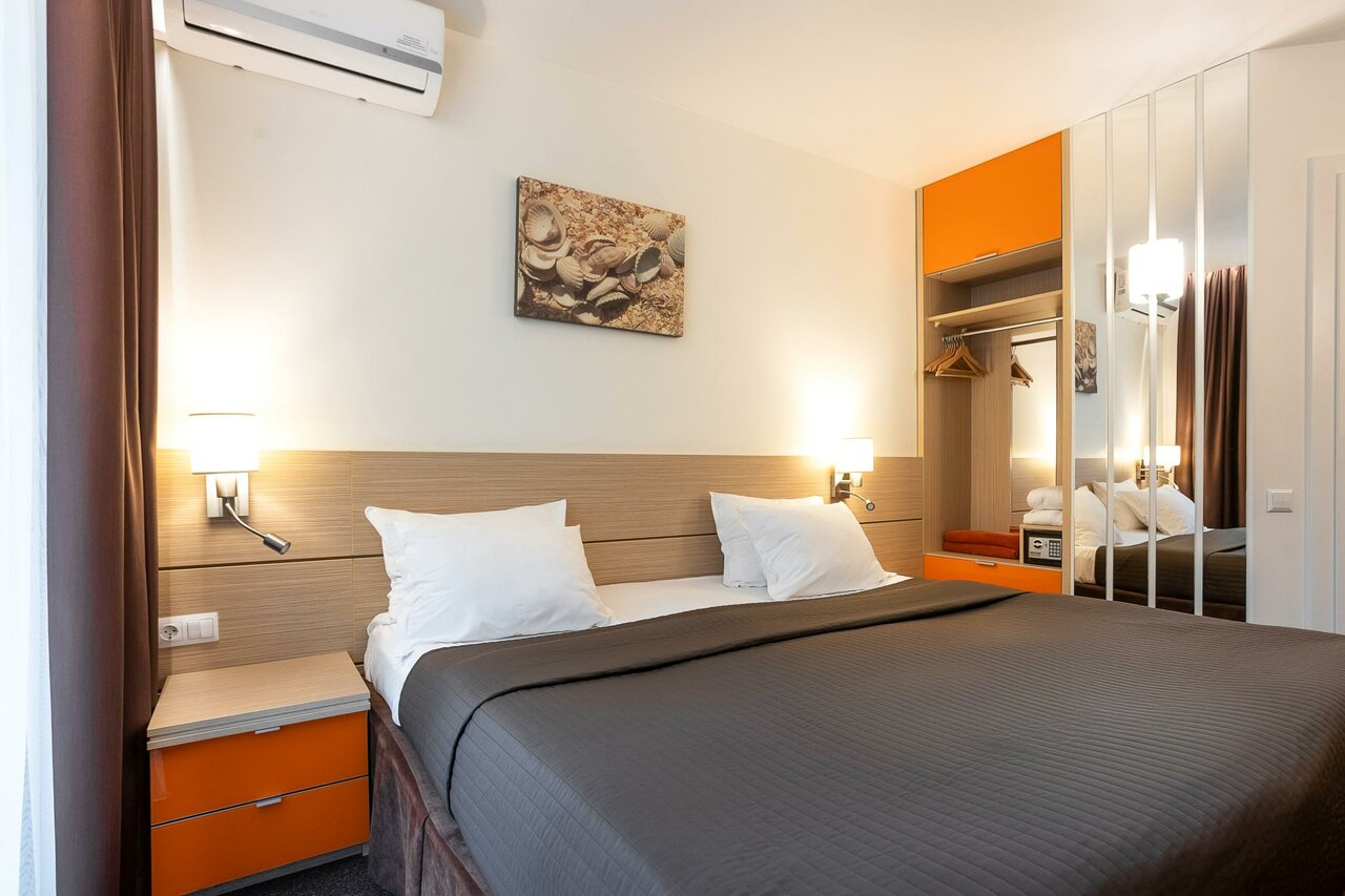 Номер Стандарт – уютное пространство с видом на курортный пейзаж. Выберите между семейной кроватью или двумя раздельными кроватями. В номере есть телевизор, Wi-Fi, рабочий стол, шкаф, ванная комната с душем и базовыми гигиеническими принадлежностями.