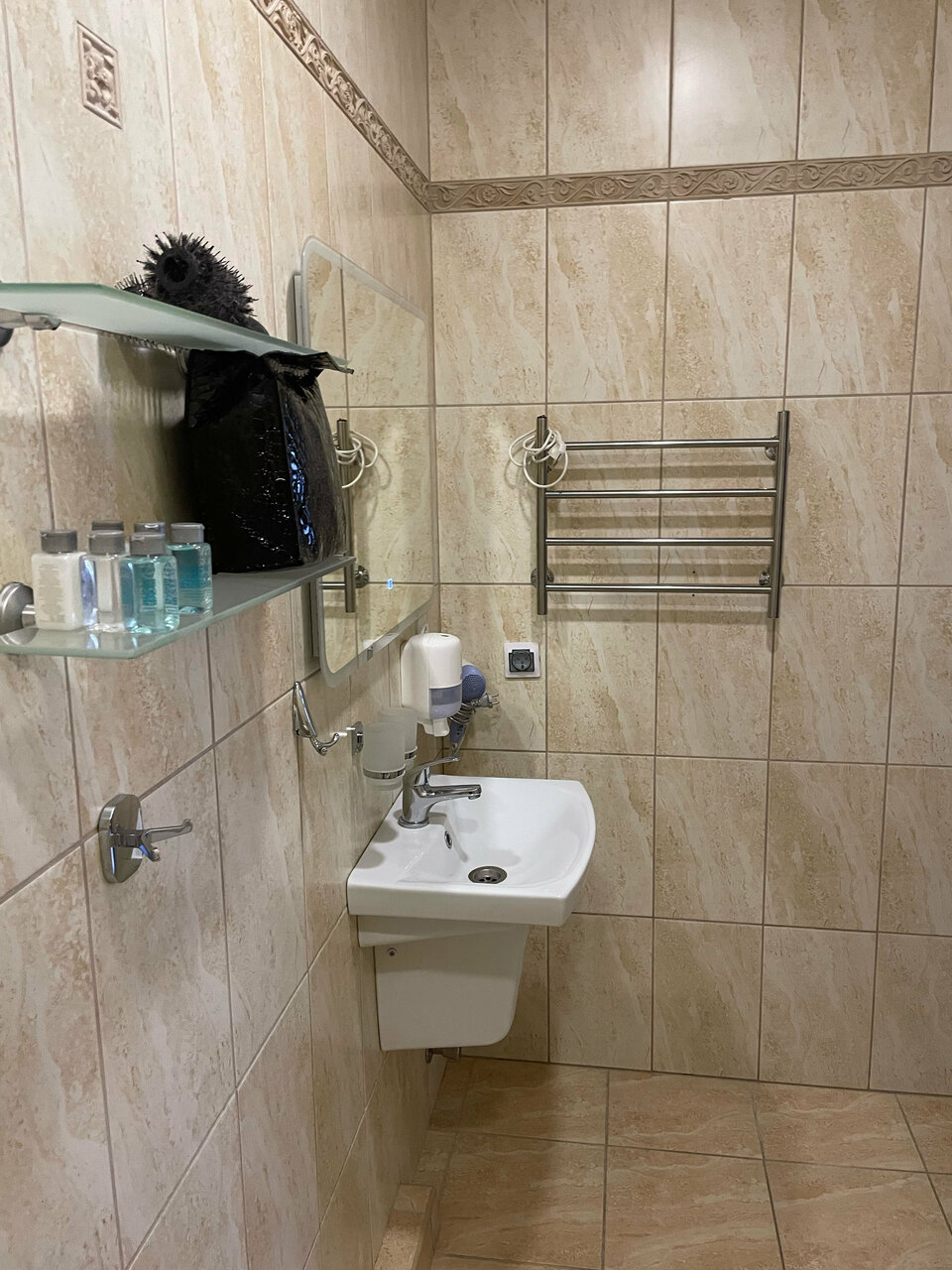 - Рабочая ванная, тёплые полы в ванной комнате.