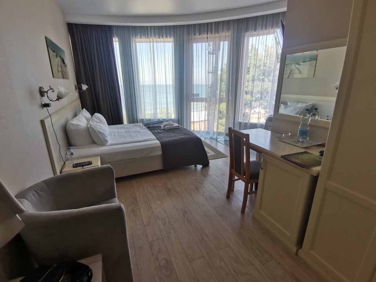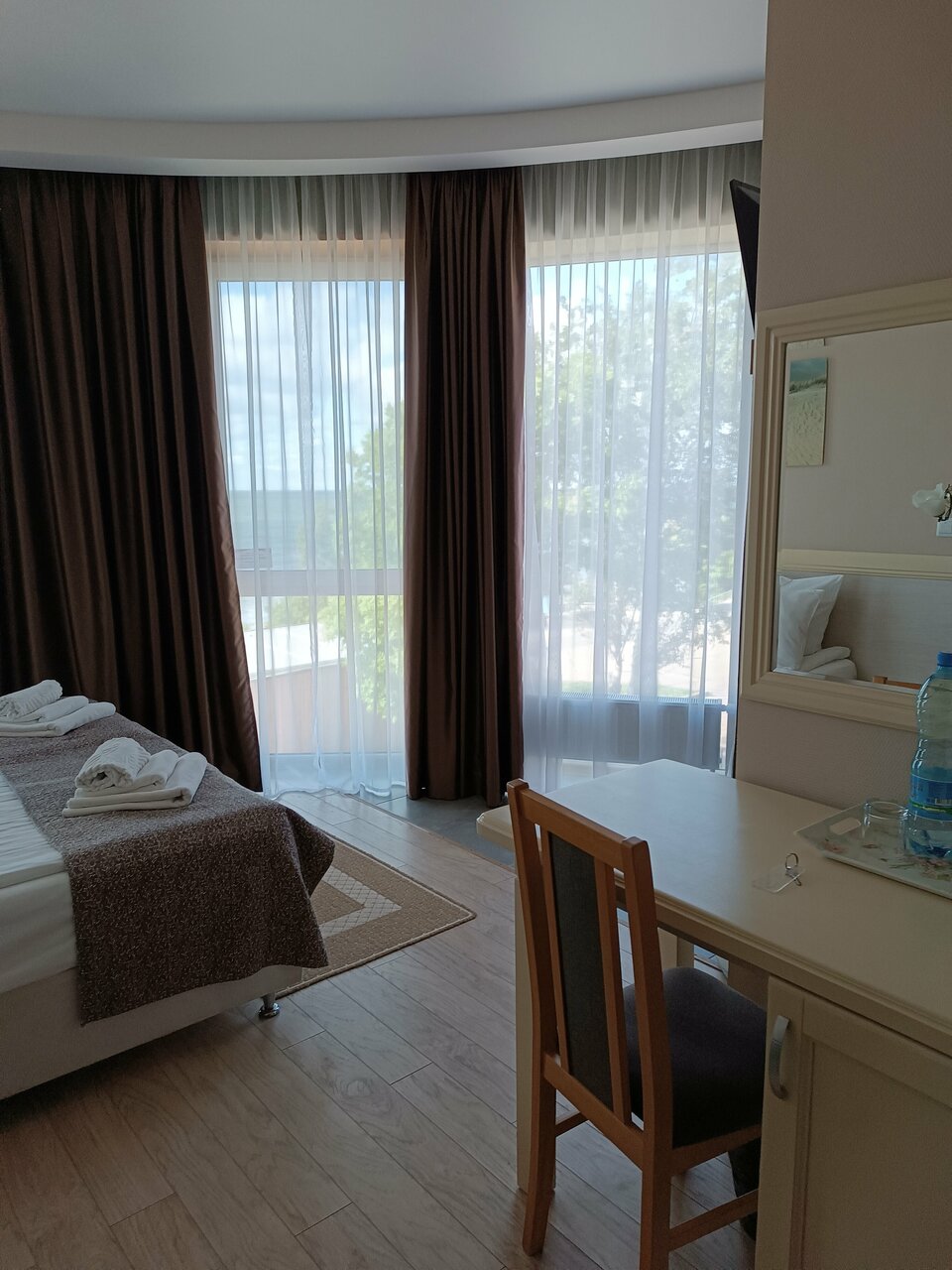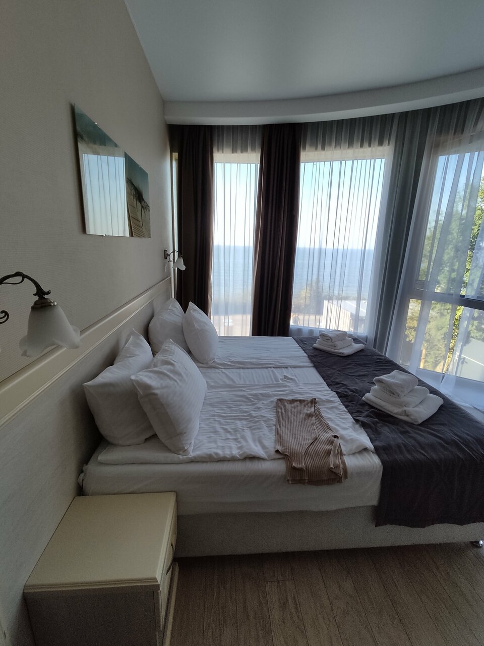 Замечательный отель, странно, что у него три звезды. У нас был номер делюкс с панорамными окнами на море. В номере было все, в том числе халаты и тапочки. Приветливый ресепшен и официанты, очень вкусные завтраки. Мы много путешествуем, есть с чем сравнивать. Спасибо отелю за уровень сервиса и отличный отдых.