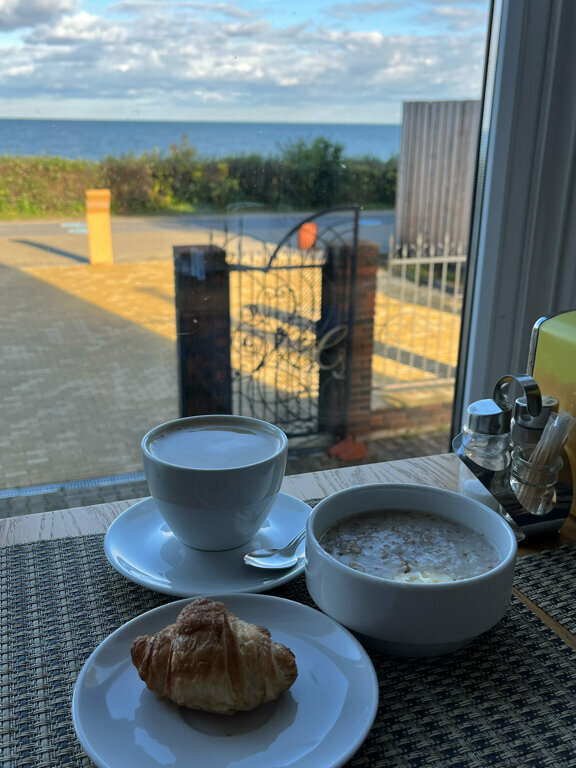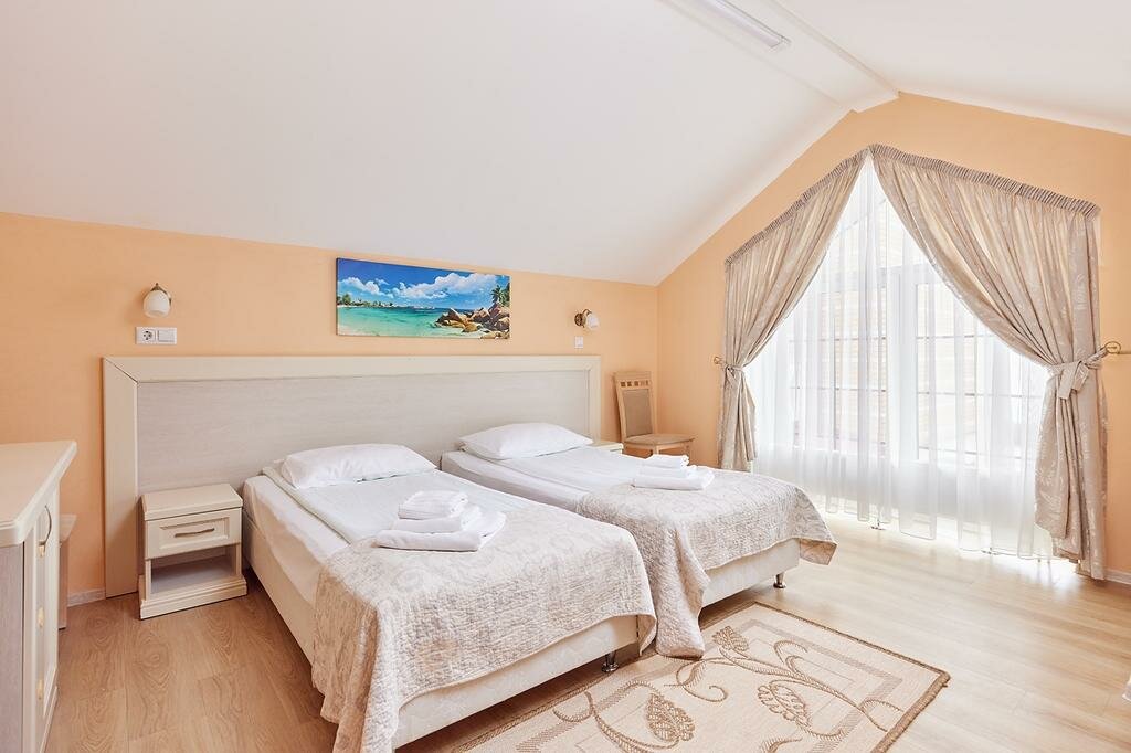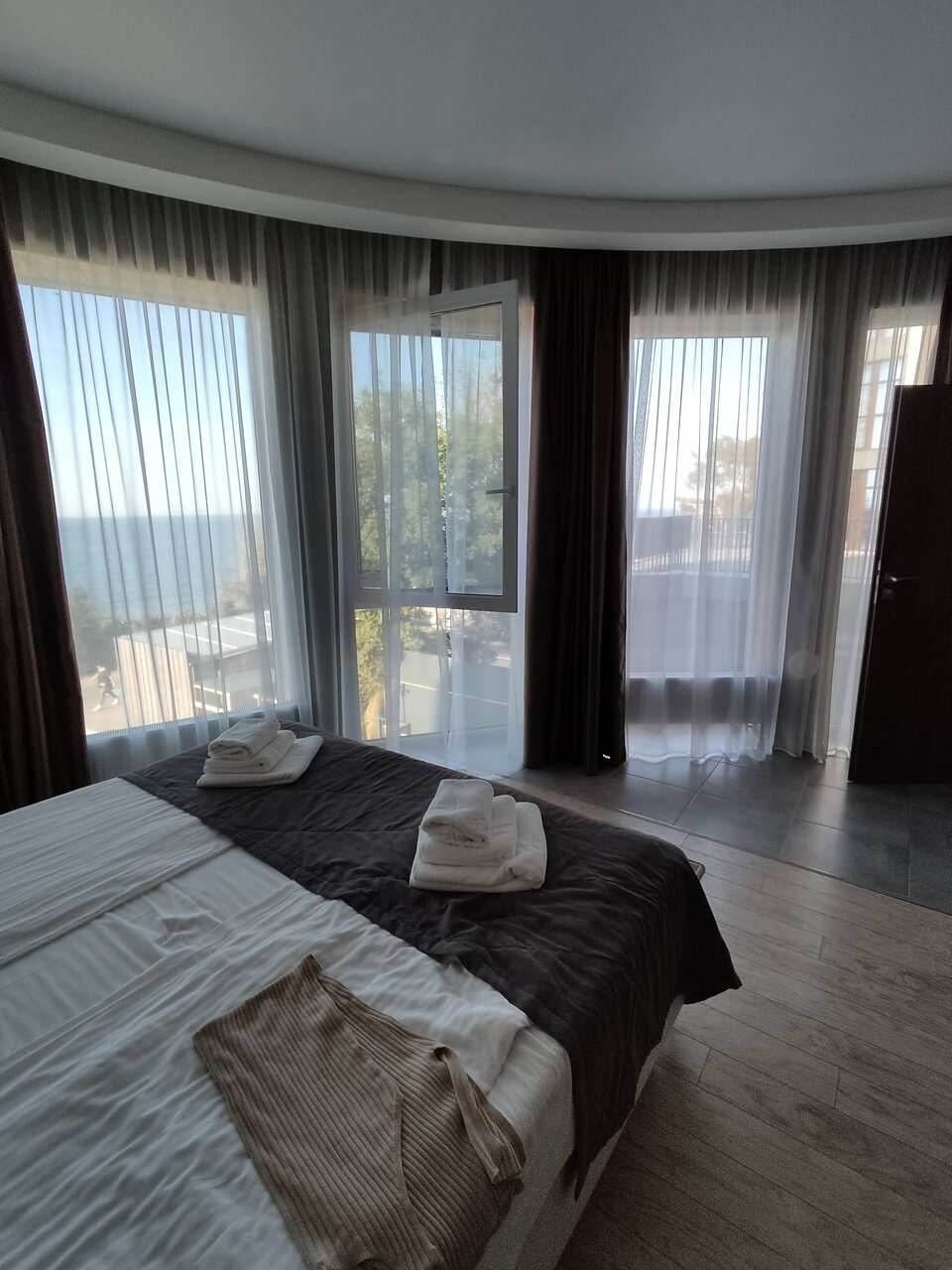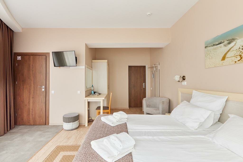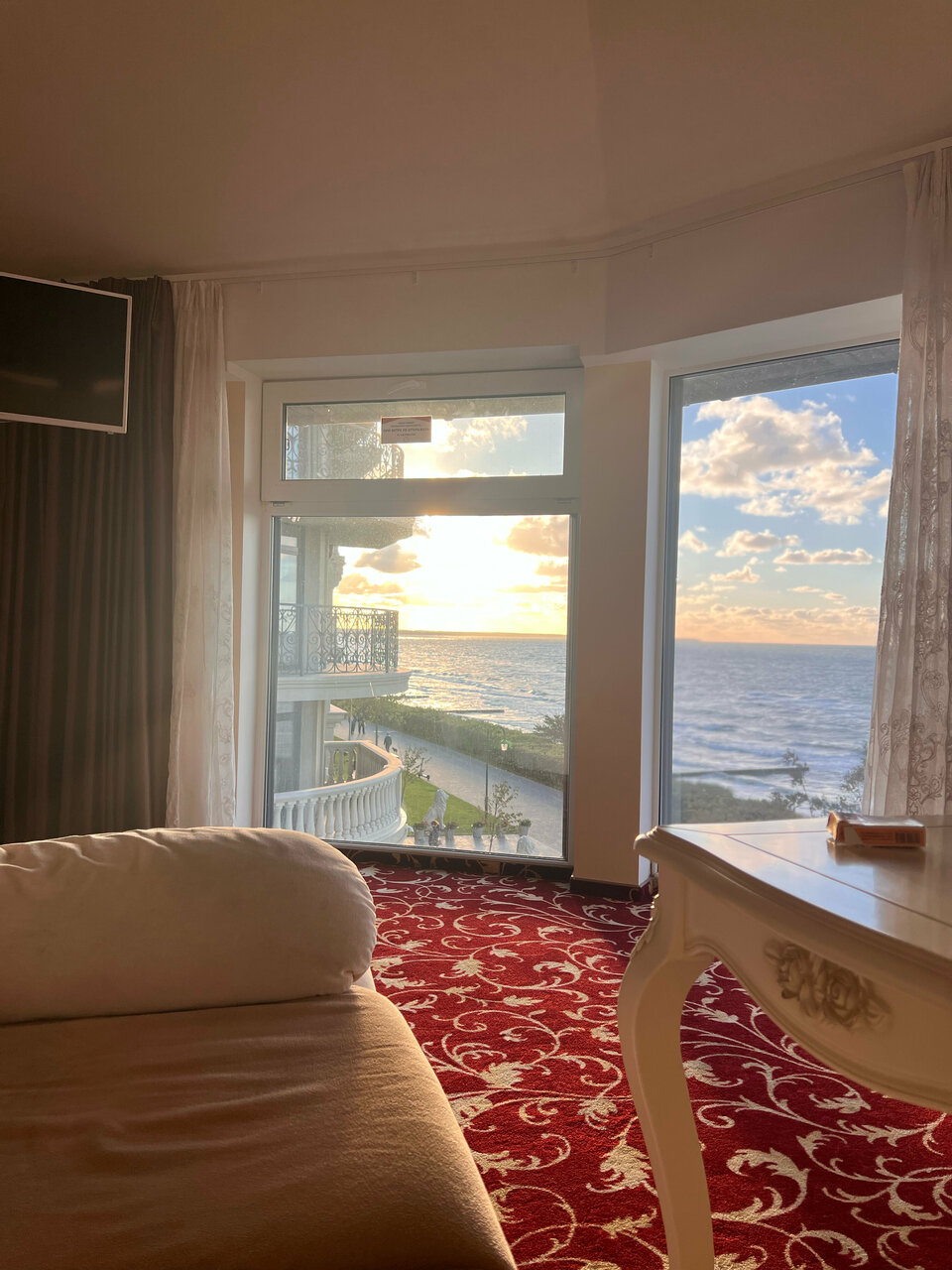 – Сразу расскажу про номера. Номер уютный, красивый и главное.. ЧИСТЫЙ. Каждый день приходит персонал и заменяет полотенца, воду, моет пол, моют зеркала и многое другое. Удобная кровать большие окна в каторые светит яркое зеленоградское солнышко.. Разве не потрясающи? Места много.. Тёплые полы в ванной комнате, фен, освежитель воздуха. Какие минусы? Минус вижу один. У кровати нет розеток.. Они есть в самой спальной комнате(и в других) но не около кровати и это грустно. Но гаджеты же не главное на море?) – Персонал хороший, улыбчивый, приятный и понимающий.. Особое уважение Игорю и Инне) – Отель включает в себя завтрак. Завтрак очень вкусный и сразу при отсутствии какой-то продукции её по возможности пополняют (советую приходить пораньше, а то всё вкусное съедят;)). Кресла удобные, чистые и открывают вид на красивое море… Ммм.. Я в восторге) Приезжала уже 2 раз… И не раз приеду сюда Приятного отдыха) .