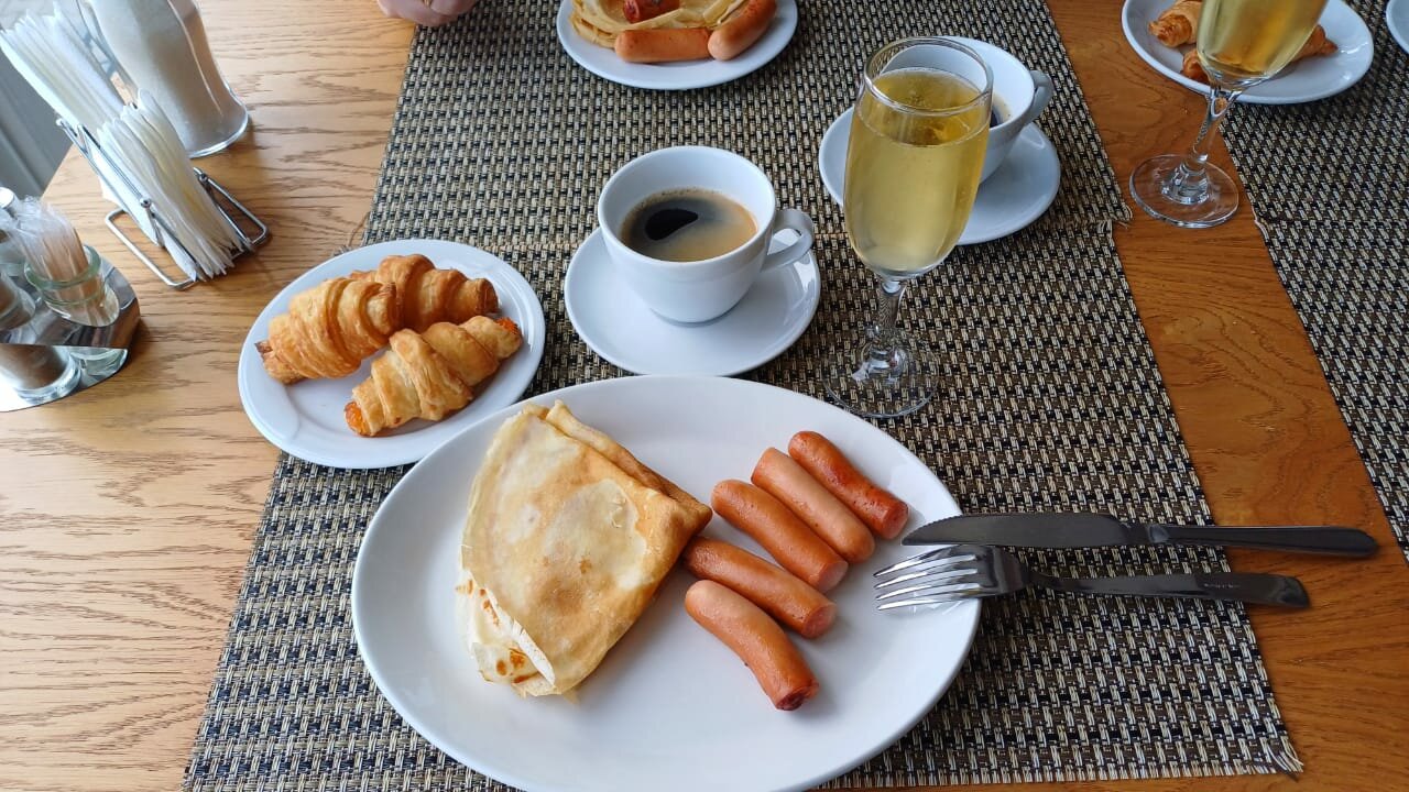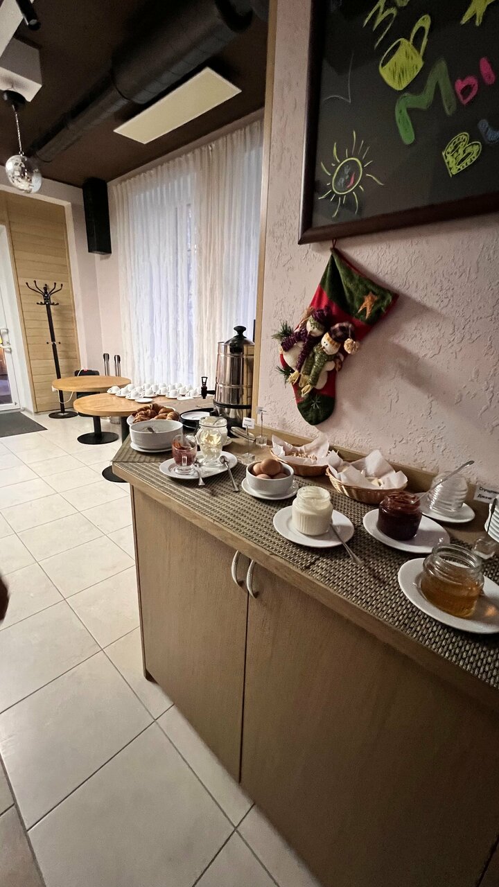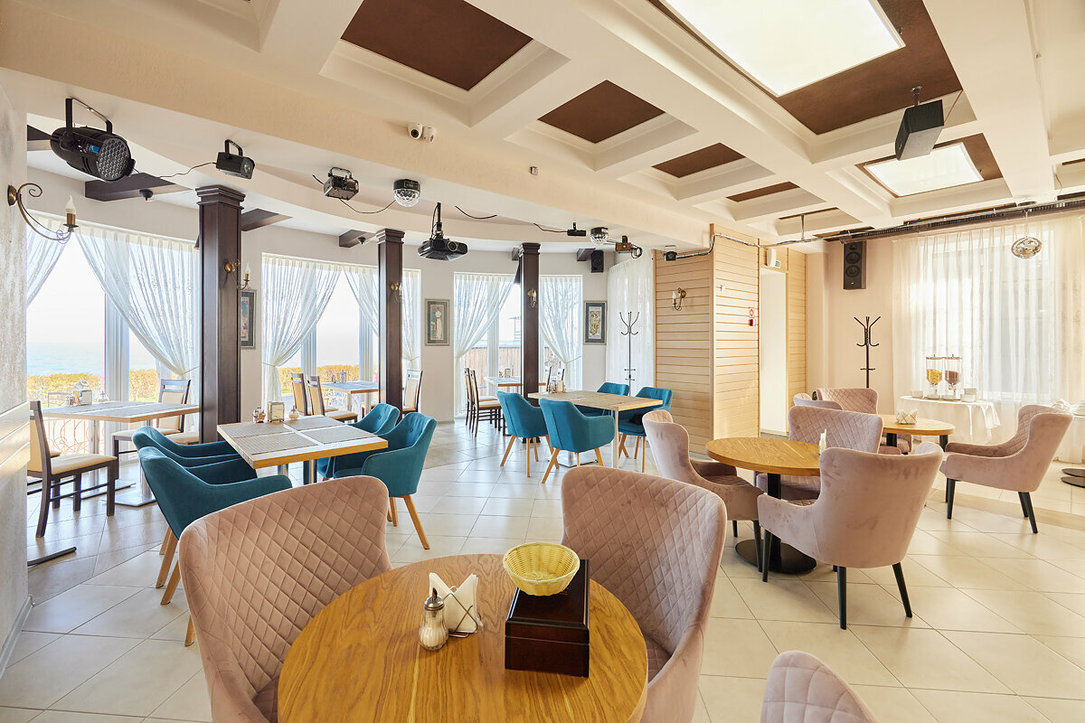 Персонал приветливый, обученный . Завтрак разнообразный , вкусный. Помещение ресторана уютное. Первая линия. Окна с видом на море. Своя стоянка для автомобилей. Зона для загорания. Близко к центру .