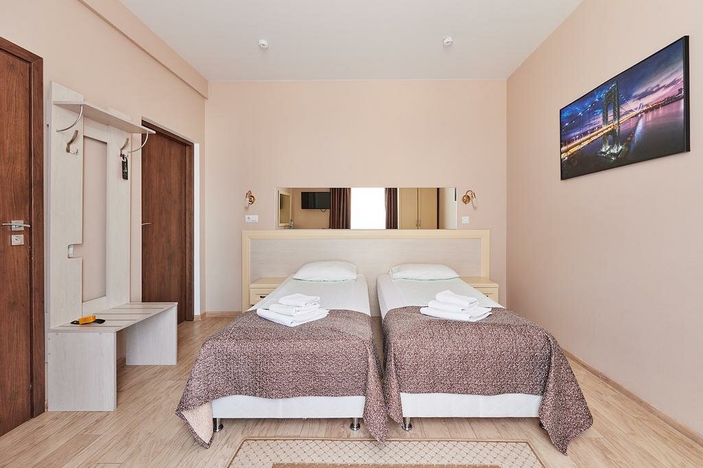 Проживание в 2-3-4-местном номере со всеми удобствами за 2700 рублей в сутки (одна 2-местная кровать плюс две 1-местные кровати, при необходимости)