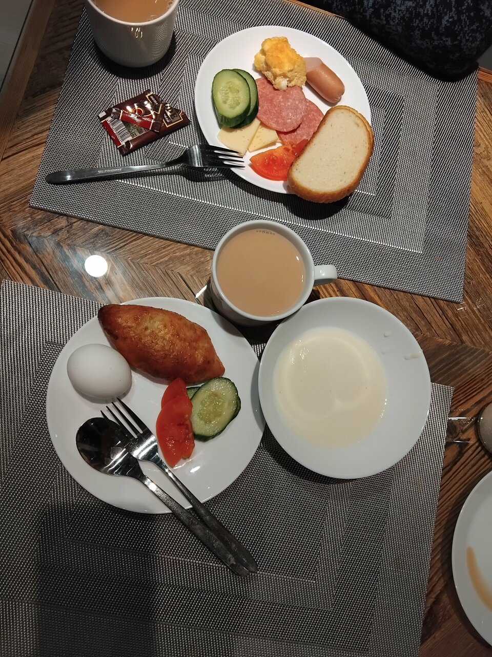 Неплохое место для переночевать. Из минусов в номере нет тапочек, воды, но есть кулер на этаже, пришлось ходить туда пару раз. Но все же бутылка воды и тапки это уже давно норма. Постель, душ, телек все хорошо, как в общем и везде. Только поезда едут и все трясётся и гремит, но не сильно прям мешает. Завтрак на тройку с плюсом. В мой протез были сосиски и омлет,каша,овощи и колбаса,пирожки с капустой. Мне не хватило блинов или оладьев.в целом неплохо, но есть с чем сравнить за такую стоимость и от того итоговая оценка. Больше от отсутствия тапок и воды