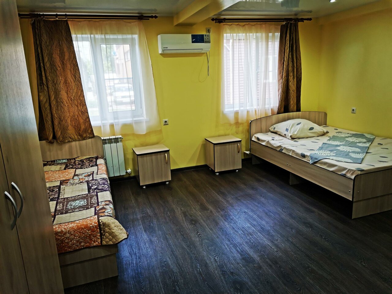 Просторная комната номера оборудована всем необходимым для отдыха и проживания. В каждом номере корпуса Люкс + есть душ и туалет, телевизор, холодильник, шкаф для одежды, прикроватные тумбы и кондиционер, стол и кресло.