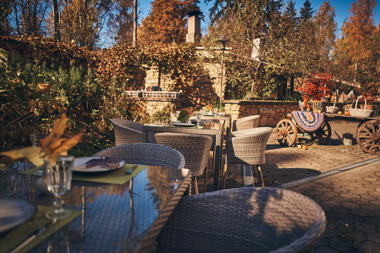 Удобства: — Питание: завтрак, ресторан, кафе, летняя веранда, детское меню. — Отдых: бассейн (сезонный), сауна, баня, спа, оздоровительный центр, массаж. — Активности: настольный теннис, бильярд, катание на лошадях, лыжах, прокат велосипедов. — Для бизнеса: конференц-зал, коворкинг. — Для гостей с животными: платное размещение. — Трансфер (платный), парковка (бесплатная), камера хранения.