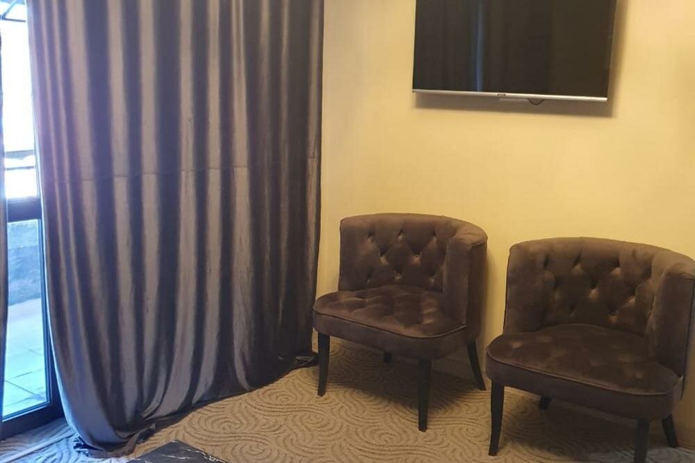 Площадь номера 40 кв.м, двухкомнатный. Номера расположены в правом и левом крыльях отеля, с великолепным панорамным видом на центральную улицу и историческую часть города Звенигород. Первая комната позиционируется как гостиная, укомплектованная б...