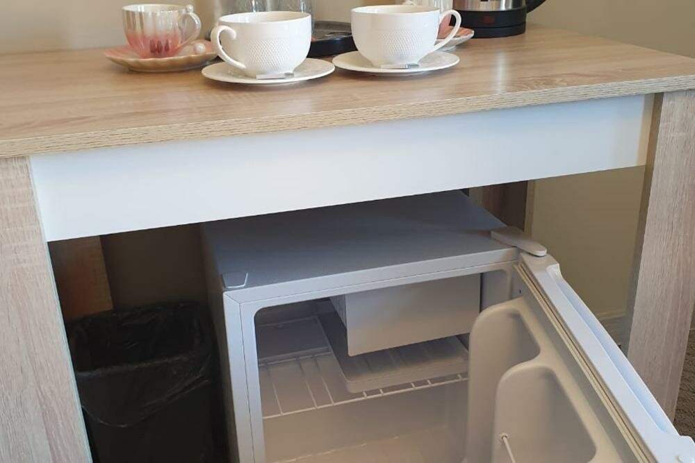- Чайный набор, холодильник, халаты, тапочки в номере.