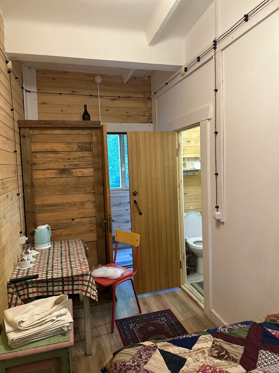 Отель расположен в стороне от города, автобусы ходят редко. Подниматься до него лесной тропой метров 300. Номер тесный (трёхместный стандарт), стоит недёшево, по углам паутина с пауками. Имеется ресторан, 900р за завтрак на шведском столе. Завтрак, сам по себе, неплох, но столько не стоит. Огромная территория с корпусами и коттеджами. Напоминает заброшенный пионерский лагерь, именно чувство заброшенности и тоски витает повсюду. Не поклонник подобного ‘арта’