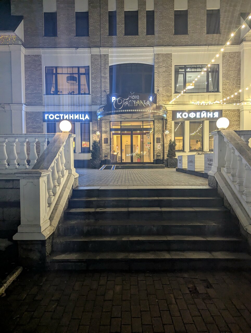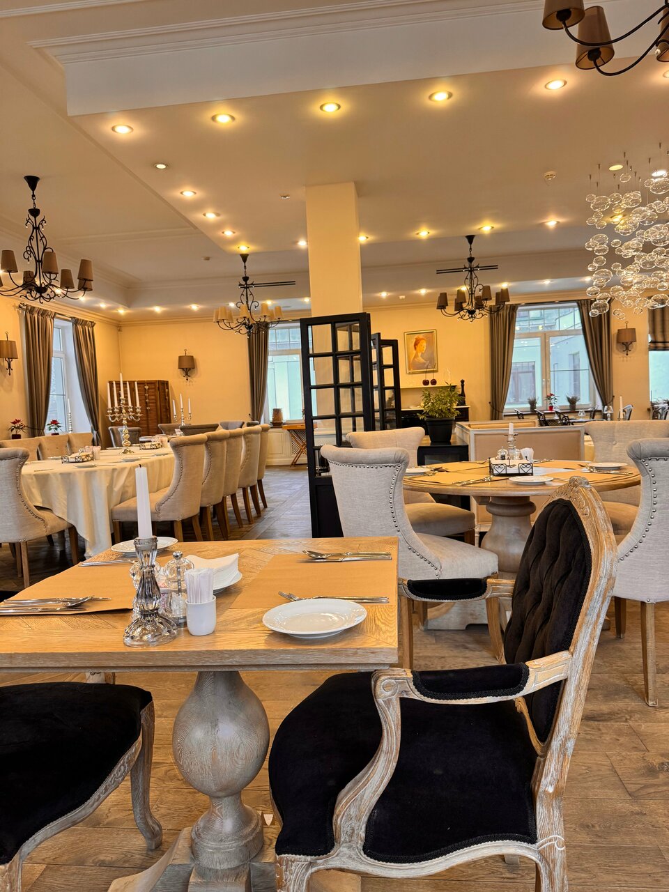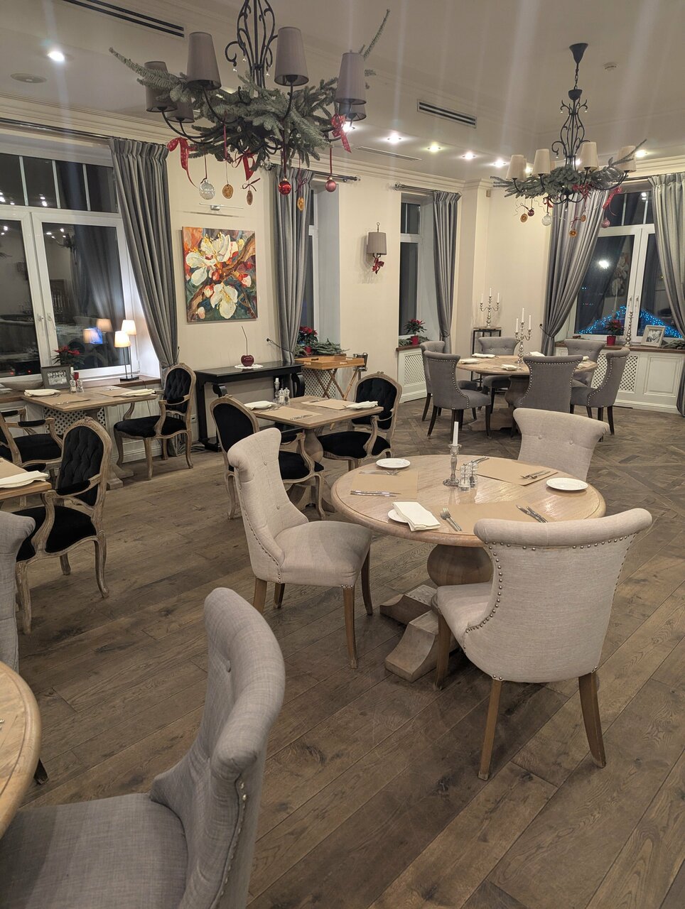 У этого отеля все прекрасно — расположение в центре, рядом парк и храм, номера большие, уютный холл с кофейней, на завтрак игристое. И часов в 5 вечера на ресепшен тоже игристое)) свой спа, с сауной и хамамом. Достаточно большой бассейн. Жаль, что джакузи нет, было бы идеально! Все чисто, персонал замечательный, отзывчивый. При желании пешком минут за 40 можно дойти до Саввино Сторожевского монастыря. Остались очень довольны. Теперь про ресторан — он такой классический по интерьеру, в хорошем смысле, с тяжелой деревянной мебелью и свечами. Очень атмосферно! И вкусно. Ростбиф взяли 2 раза, так понравился. Коктейли интересные, есть комплимент, пока ждешь заказ. Мы были в пятницу, выступала золотой голос России Кристина Евдокимова. Получили массу позитива, уходить не хотелось. И даже когда во всем городе отключили электричество, Кристина пела а-капелла, и коктейли продолжали наливать. Очень хочется вернуться, может, решусь попробовать улиток)