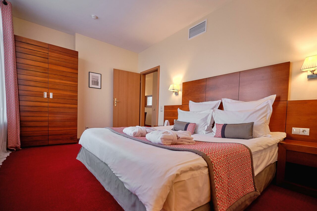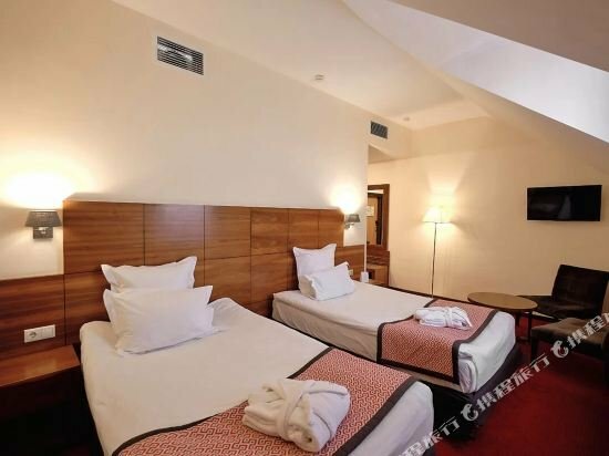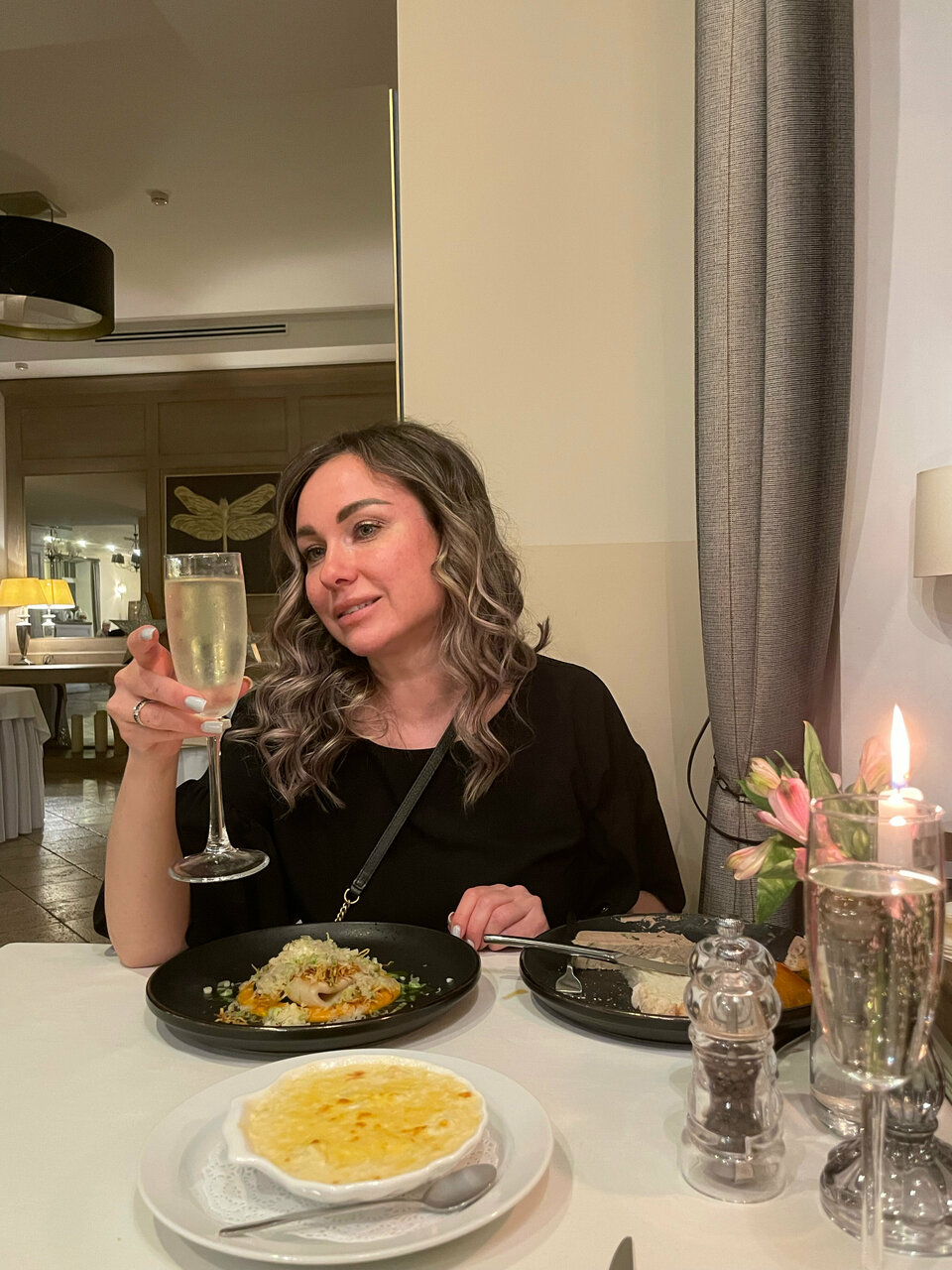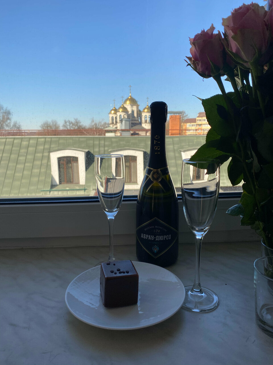 У этого отеля все прекрасно — расположение в центре, рядом парк и храм, номера большие, уютный холл с кофейней, на завтрак игристое. И часов в 5 вечера на ресепшен тоже игристое)) свой спа, с сауной и хамамом. Достаточно большой бассейн. Жаль, что джакузи нет, было бы идеально! Все чисто, персонал замечательный, отзывчивый. При желании пешком минут за 40 можно дойти до Саввино Сторожевского монастыря. Остались очень довольны. Теперь про ресторан — он такой классический по интерьеру, в хорошем смысле, с тяжелой деревянной мебелью и свечами. Очень атмосферно! И вкусно. Ростбиф взяли 2 раза, так понравился. Коктейли интересные, есть комплимент, пока ждешь заказ. Мы были в пятницу, выступала золотой голос России Кристина Евдокимова. Получили массу позитива, уходить не хотелось. И даже когда во всем городе отключили электричество, Кристина пела а-капелла, и коктейли продолжали наливать. Очень хочется вернуться, может, решусь попробовать улиток)