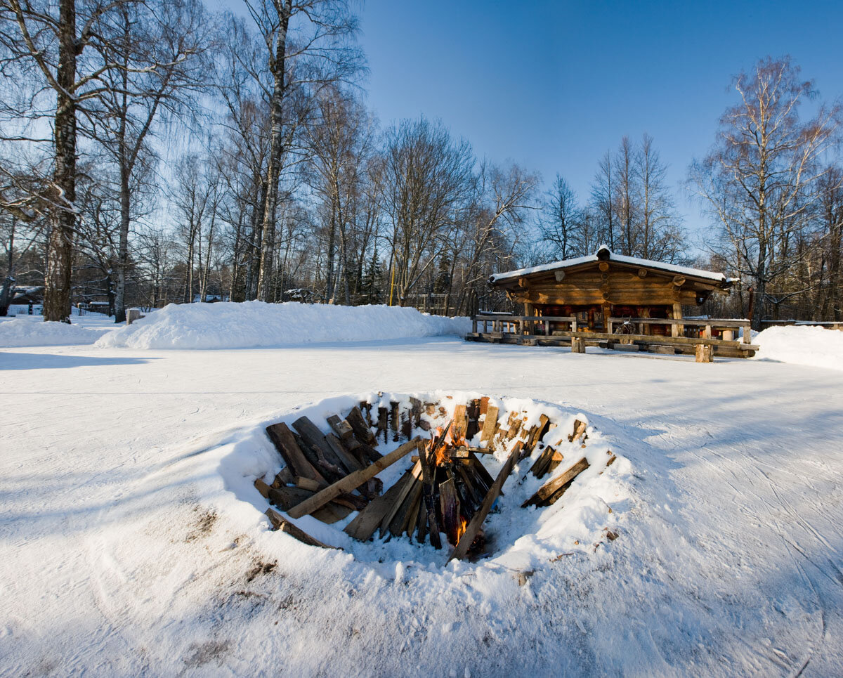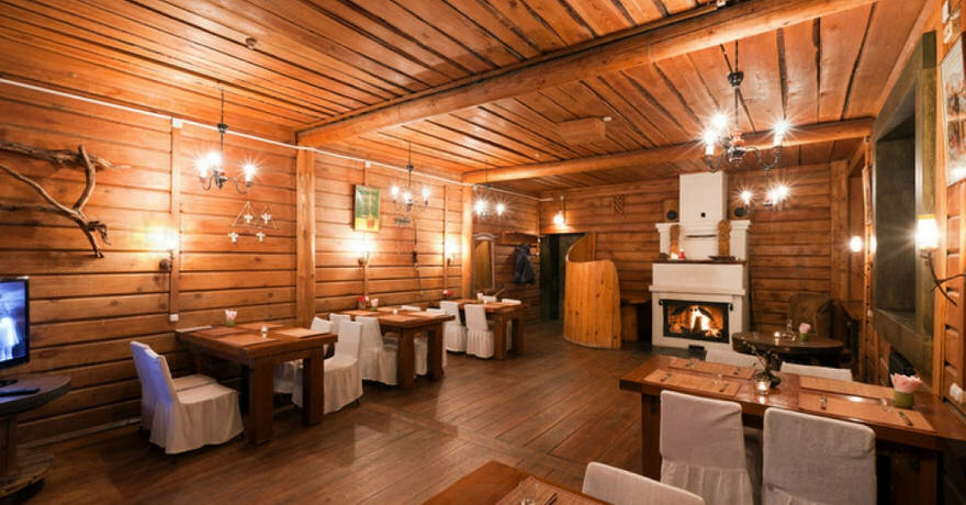 Очень сказочные дома. Живёшь в избушке Бабы-Яги))). Рестораны и кафе низкого уровня. Баня по-черному. Шашлыки можете сами готовить возле дома.